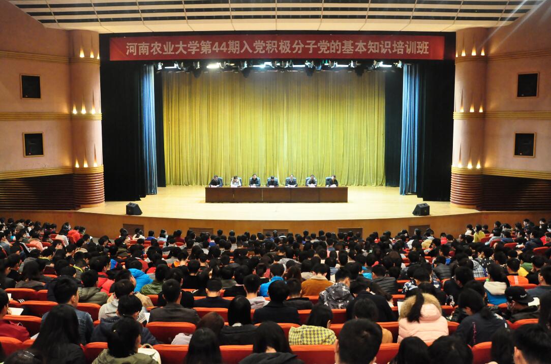 11月20日,91猫先生 同农学院、牧医工程学院、烟草学院、植物保护学院、食品科学技术学院、理学院、体育学院等八个学院共计1200多名入党积极分子,在文化路校区千人大礼堂参加“91猫先生 第44期入党积极分子党的基本知识培训班”的开班典礼。校党委组织部副部长、校党专职副校长余磊同志,各学院分党校校长、副校长等出席开班典礼。典礼由91猫先生 党委副书记刘海涛同志主持。