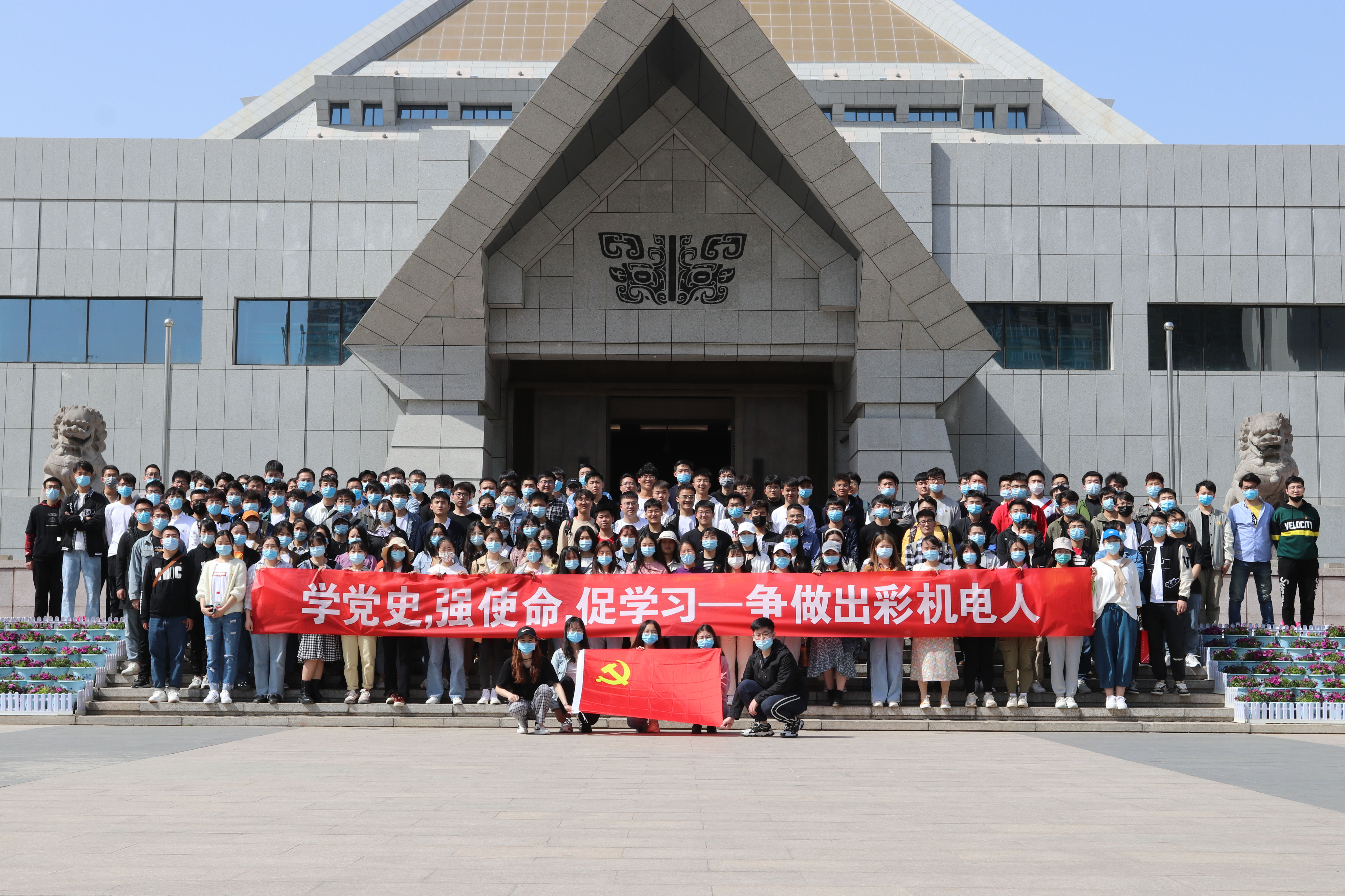 全体学生党员赴河南博物院开展“学党史,强势明,促学习——争做出彩机电人”特色党日活动。