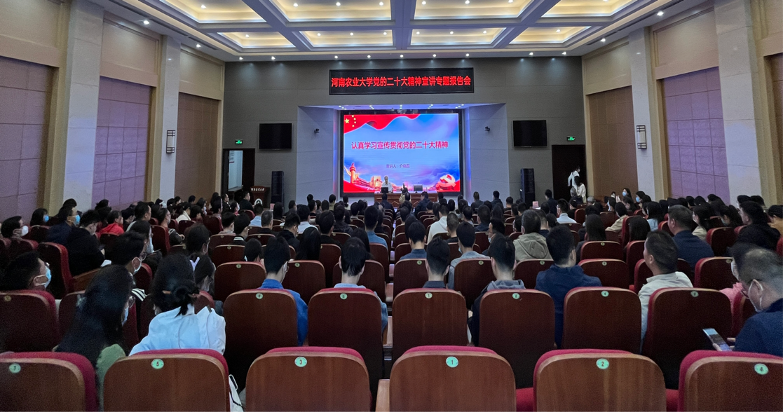 介晓磊从认真领会党的二十大主题及主要成果,过去5年的工作和新时代10年伟大变革、关于马克思主义中国化现代化、关于中国式现代化、关于全面建设社会主义现代化国家的目标任务、关于坚持党的全面领导和全面从严治党、关于应对风险挑战等方面,对党的二十大精神进行了系统阐释和深入解读。他强调,要把学习贯彻习近平总书记视察河南重要讲话精神与宣传贯彻党的二十大精神紧密结合起来,为全面建设社会主义现代化国家、全面推进中华民族伟大复兴贡献力量。要围绕习近平总书记关于高等教育的重要论述精神,立足学校办学实际,对标双一流大学建设目标,从大类招生、分型培养、前后贯通、个性发展方面在人才培养上探索“新路子”。