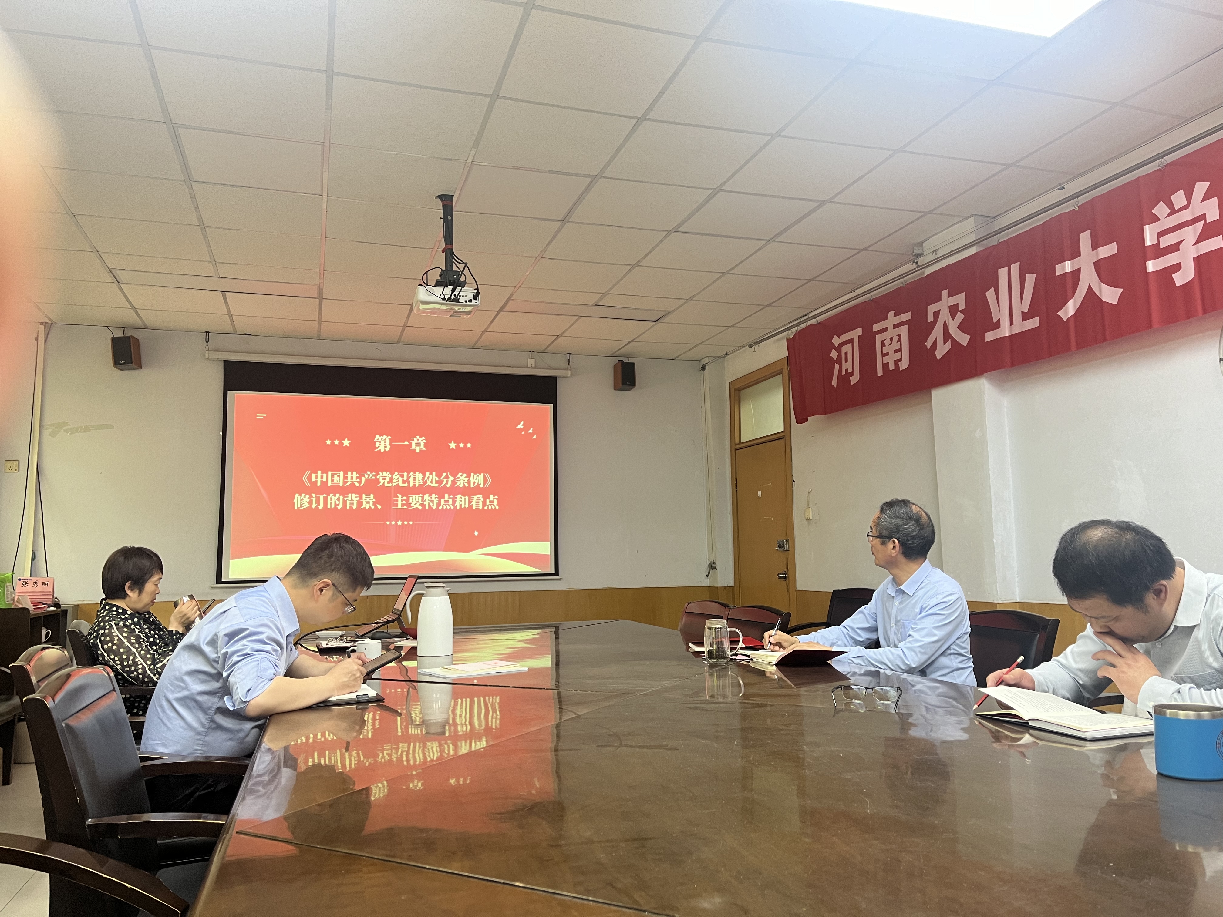 在学院二楼会议室举办党纪学习教育读书班,学院领导班子成员参与此次学习。