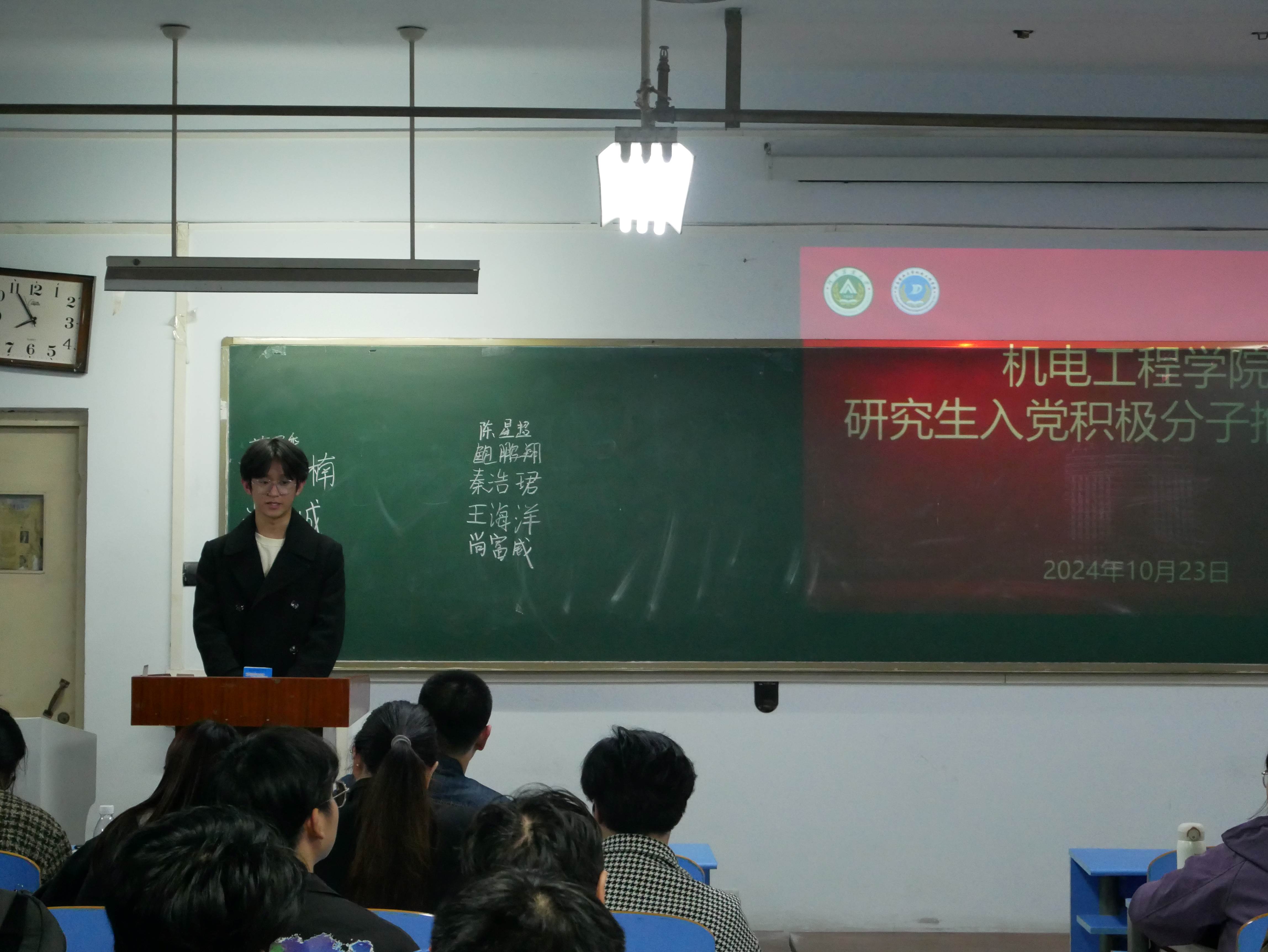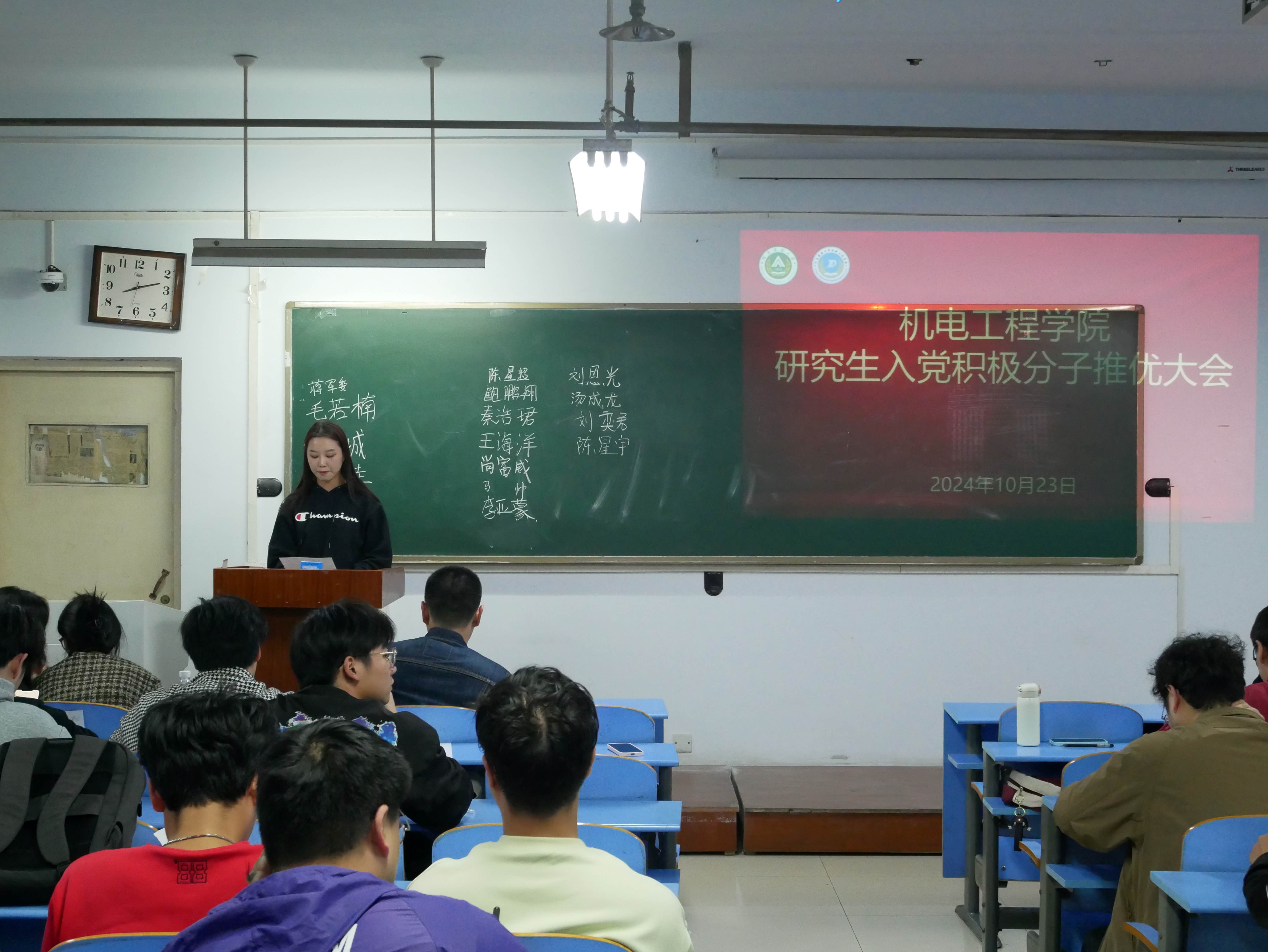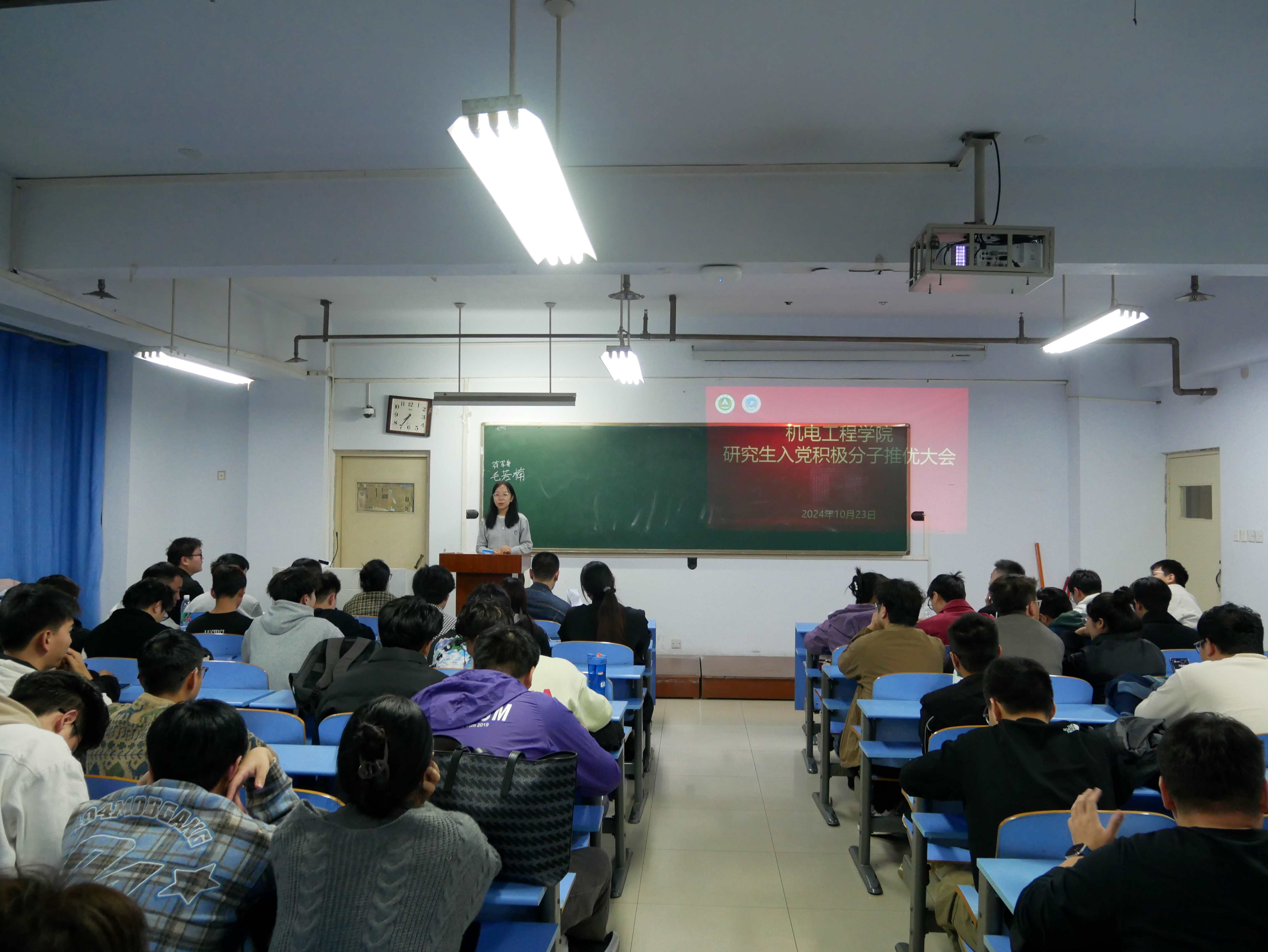 研究生党支部于文化路校区推广楼301教室组织进行入党积极分子推优大会。院党委副书记宋晶、研究生辅导员李锦、24级全体研究生团员及各支部党员参会,会议由研究生第三党支部书记户付盟主持。