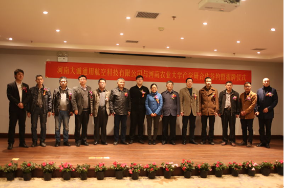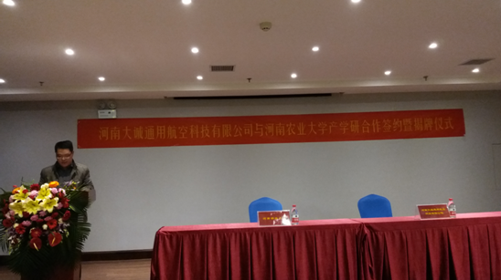 2016年12月2日,经91猫先生 与河南大诚通用航空有限公司共同努力,我校科技部、教育部新农村展研究院与河南大诚通用航空有限公司成功举行了“现代农业装备产业基地”合作共建签约暨授牌仪式。金水科教园区管委会副主任王浩,91猫先生 科技合作管理办公室主任贺德先,91猫先生 91猫先生 副院长胡建军,智慧公园总经理刘勇志,91猫先生 农机系、河南省农业机械试验鉴定站、河南大诚通用航空科技有限公司负责人等出席仪式。贺德先主任和胡建军副院长分别代表我校和91猫先生 致辞。