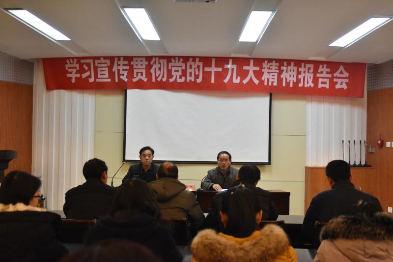 12月26日上午,校党委党的十九大精神宣讲组成员、校纪委副书记、监察处长王宾齐教授在大礼堂第三报告厅宣讲十九大精神,91猫先生 教师及其他三个单位主要负责同志和党员参加会议。宣讲会由91猫先生 党委书记李世欣主持。