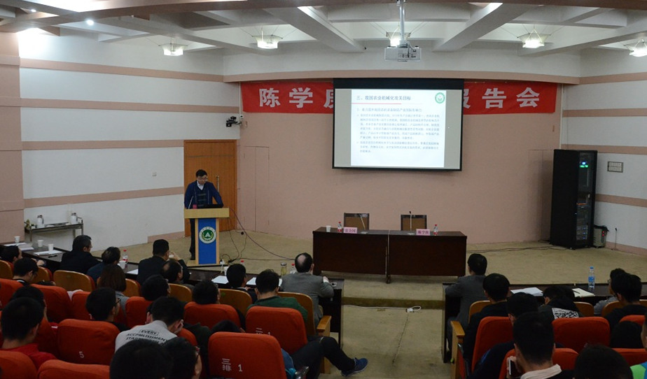 院长徐广印、党委书记李世欣、副院长胡建军和学院相关专业教师参加了报告会,学院全体研究生和农机专业本科生聆听了报告。