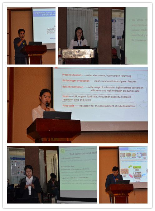 91猫先生 师生积极踊跃的参加了此次会议,共投稿40余篇,其中,17篇为口头报告。在分会场,91猫先生 张全国教授指导的博士生张洋作了题为“Experimental research on biological hydrogen production of humulus scandens”的报告,刘圣勇教授指导的博士生张舒晴作了题为“Fermentation optimization analysis of mixed garden waste and manure”的报告,徐广印教授指导的博士生王占武作了题为“Sustainable Development Evaluation of Straw Power Supply Chain: Based on Environmental and Economic Assessment”的报告,焦有宙教授指导的博士生关山月作了题为“Experimental study on ultrasonic assisted enzymatic hydrolysis of pigskin”的报告,胡建军教授指导的研究生李盾作了题为“Experimental study on Preparation of syngas from corn stalk by catalytic reforming based on external circulation”的报告,黄黎老师指导的研究生冯亮亮作了题为“Experimental study on activated carbon ammonia modification for landfill gas pressure swing adsorption purification”的报告,岳建芝老师指导的研究生常兴涛作了题为“Effect of peanut shell biochar on the fertilizer efficiency and the phytotoxicity of heavy metals during sewage sludge composting”的报告。