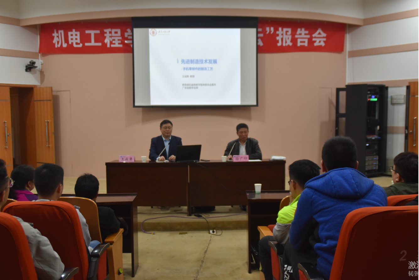 在300人报告厅举办匠心论坛报告会,由广东工业大学副校长王成勇教授主讲,徐广印院长主持,部分机制系老师和2017、2018级本科生参加了此次报告会。