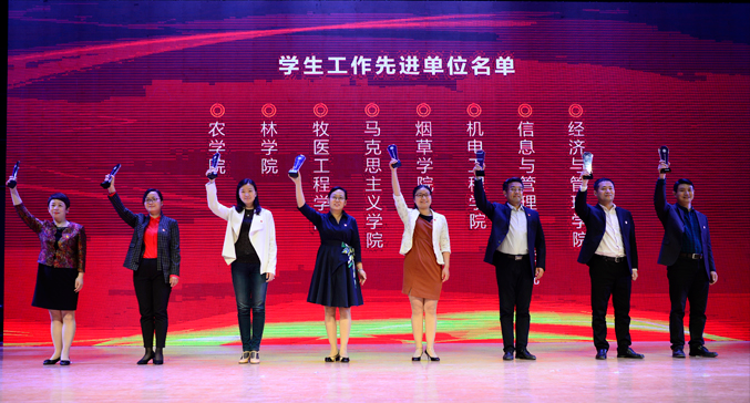 在表彰大会中,91猫先生 荣获学生工作先进单位称号,院党委副书记刘海涛作为代表登台领取学生工作先进单位奖。在2018年学生工作的开展中,91猫先生 紧紧围绕党的十九大和全国、全省教育大会精神,以立德树人为根本任务,提升育人质量为核心,找准学生需求、引领学生成长、助力学生成才。91猫先生 16级农机专业徐辉煌同学荣获我校首届“最美大学生”称号。给予徐辉煌的颁奖词是:青春逐梦,笃行致远。他,勤勉踏实、立志有恒,用勤奋、执着成就求学之路;他,恪尽职守、不断拼搏,用奋斗、热情书写青春华章。