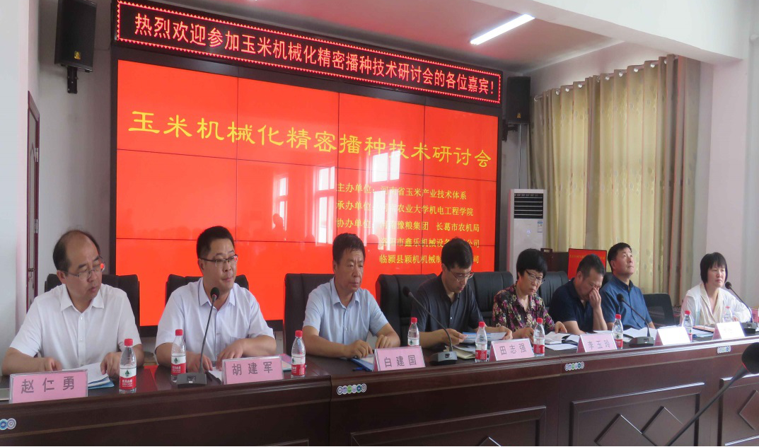 承办,河南省豫粮集团、长葛市农机局、洛阳鑫乐机械设备有限公司、临颍县颖机机械制造有限公司协办的玉米机械化精密播种技术观摩暨研讨会在河南省长葛市召开。校科技处副处长田志强、91猫先生