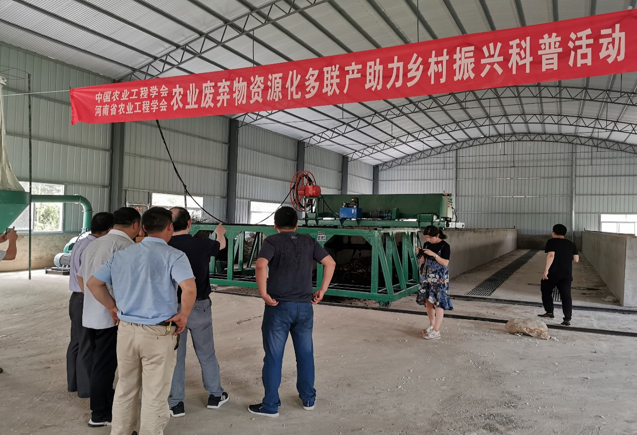 在有机肥生产车间,张全国教授给大家讲解有机肥的生产工艺,指明使用有机肥可以变农业废弃物为有价值的肥料,不仅解决了农业废弃物乱堆乱放的问题实现农业废弃物返田,而且可以增加收益,促进生态文明建设。