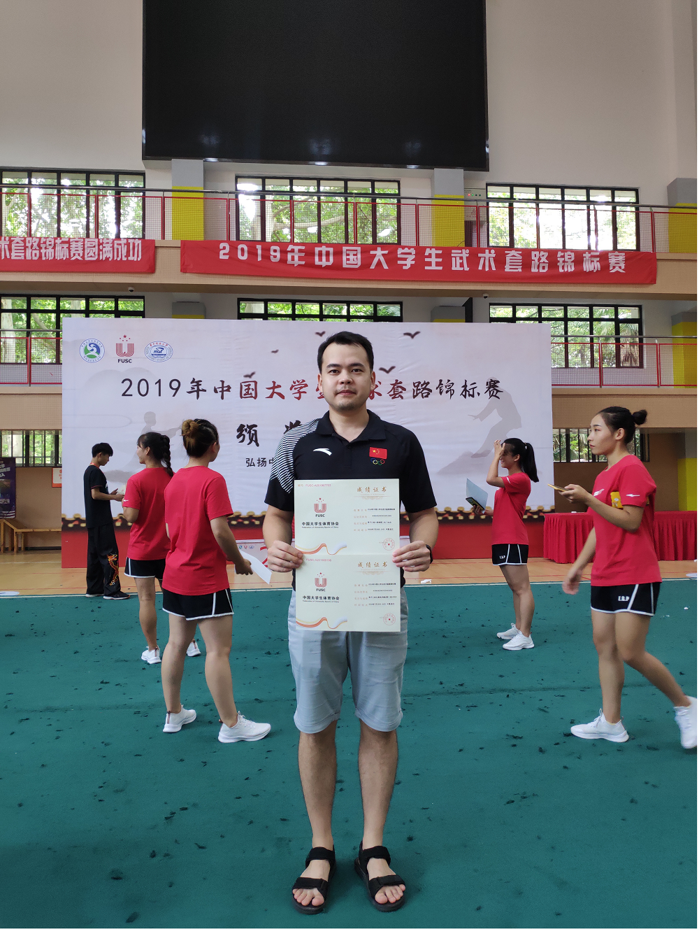 7月18日至23日,由中国大学生体育协会主办、中国大学生体育协会民族传统体育分会协办、华中科技大学承办的“2019年中国大学生武术套路锦标赛”在华中科技大学西区体育馆举行。我校选派了包括4名留学生在内的14名选手参加了此次锦标赛。