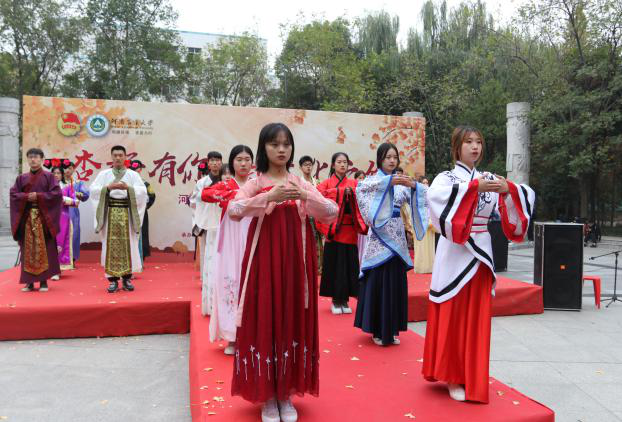 党委书记李世欣致开幕辞,他指出银杏树不仅是教育“十年树木,百年树人”的最好注解,也恰是我校"明德自强,求是力行"校训精神的象征,希望同学们学习弘扬宝贵的中华银杏精神,增强文化自信,争做有品格、有品行、有品位的新时代大学生。随后,资源与环境学院党委书记毕庆生宣布银杏文化节开幕。活动现场分为秀银杏-银杏文化展示、颂银杏-文艺节目汇演、映银杏-与银杏同画、赞银杏-学生专业作品展示、品银杏-茶文化鉴赏及互动环节-“学四史"有奖知识竞答及“杏语心愿”许愿墙六大板块。作品展示环节,银杏拼成的“清秀少女”、“康乃馨花”、“蝴蝶”等前期征集的绘画、摄影、剪纸、书法、手工艺品等百余件优秀代表作品精彩亮相,同学们制作精美、创意十足的作品获得了在场师生的点赞好评。节目展演环节,两院学子联合演绎的传统服装T台秀、武术武之魂、歌曲知否、舞蹈、朗诵、渔州晚唱古典乐器等节目美轮美奂、精彩纷呈,赢得了现场师生的阵阵掌声,将活动现场推向高潮;此外,答题及心愿墙互动环节,吸引了现场的师生积极参与,强化了学生爱国荣校理念。