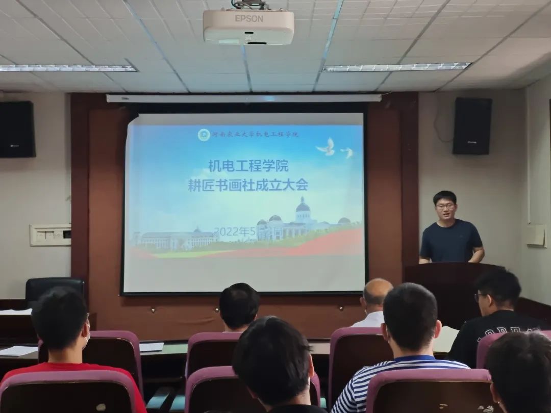 “耕匠书画社”成立大会。院党委副书记赵宁,团委书记黄笑,社团特邀教师贾连爱出席此次大会,耕匠书画社全体成员参加大会。会议由黄笑主持。