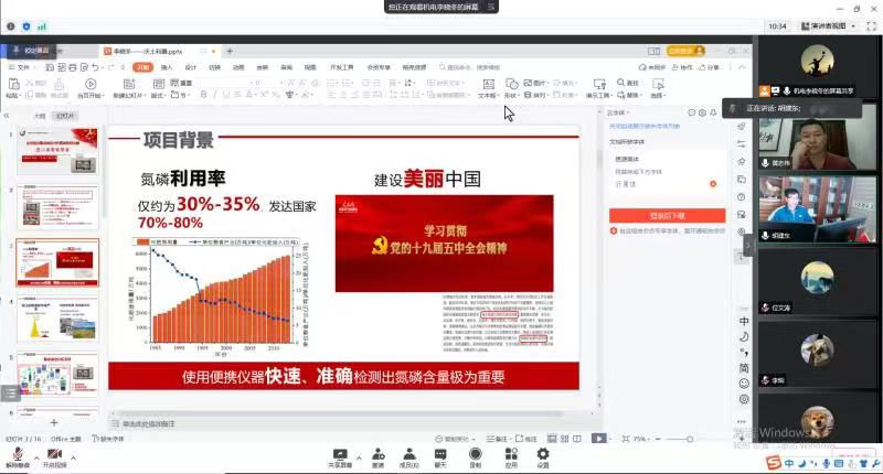 期间,黄教授还让拟申报互联网+比赛的团队负责人李晓冬汇报了参赛项目准备情况、项目竞争性内容和面临的困难和问题等。黄教授从专业技术视角,以获奖指导老师的经历,对参赛项目计划书撰写、路演准备、视频制作等关键环节进行了点评,提出了很好的建设性修改建议。