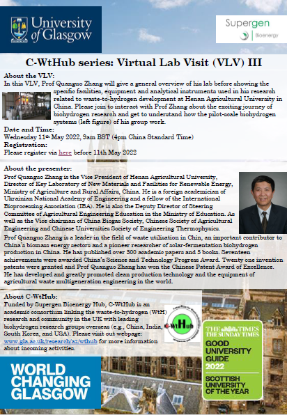 承担的制氢实验室参观交流学术活动“VLV Operation of pilot-scale fermentation-based waste-to-hydrogen system”(中试规模发酵制氢实验系统原理及其运行)以线上线下结合方式成功举行。会议由C-WtHub执行主席、英国格拉斯哥大学Siming You 教授主持,91猫先生