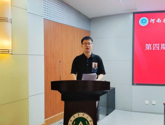 第四期青马班优秀学员代表王毅轩发言。他首先对学院老师的关怀、青马班学员的配合表达感谢,随后向与会人员分享了三点收获。他表示,在青马班学习的日子里,更加坚定了对共产主义的信仰、更加注重理论与实践的结合、更加珍惜来之不易的同学情谊,表明今后将继续牢记习近平总书记提出的嘱托,向先进同志学习,努力发展自我,矢志不渝地成为一名有思考、有灼见、有锋芒的青马人。