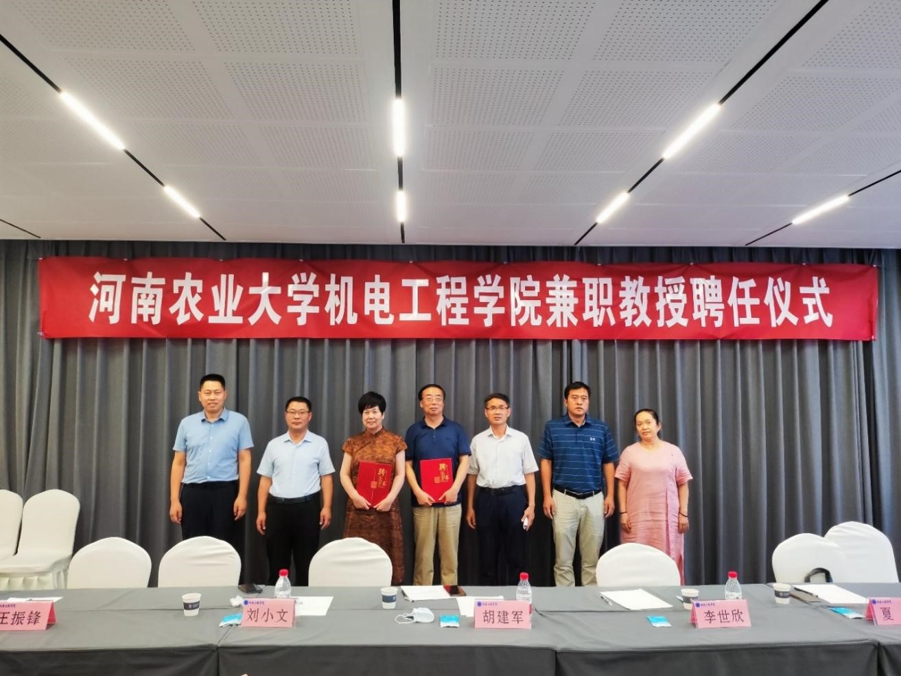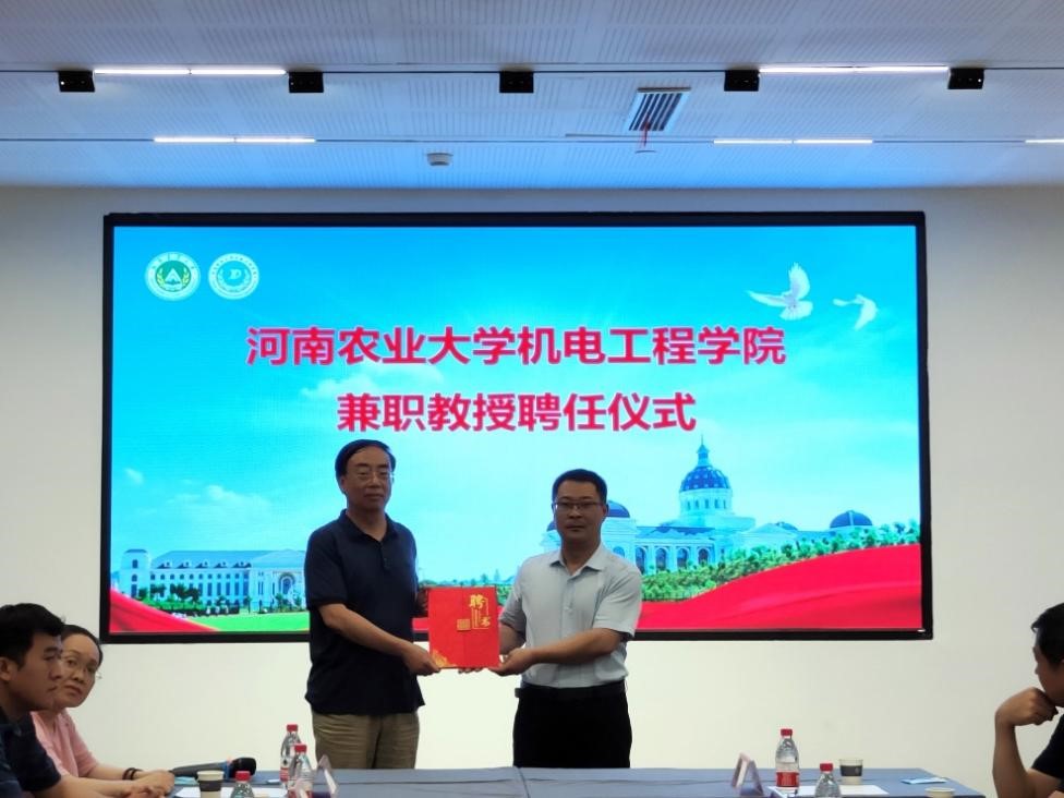 兼职教授聘任仪式在农业路松果酒店二楼会议室举行,学院聘请河南省农业技术推广总站刘小文研究员、河南省农业机械技术中心农业机械推广处夏放研究员为91猫先生