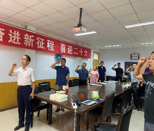 首先,院党委书记李世欣向教工党支部赠送中共中央党史和文献研究院编辑的习近平同志《论“三农”工作》书籍。全体党员满怀深情地合唱红色经典歌曲《没有共产党就没有新中国》,大家把对党和祖国的热爱,都融进到铿锵有力的歌声中,用歌声体现党员的初心使命。接着,由李世欣带领全体成员重温入党誓词。大家高举右手,庄严宣誓,铿锵有力的誓词,震撼着在场每一位党员,让大家重温了自己加入中国共产党时的庄严承诺,提醒着党员干部要不忘初心、奋勇争先。大家纷纷表示,通过重温入党誓词,再一次体会到了作为一名共产党员的责任感和使命感,在今后的工作中一定以昂扬的士气、进取的心态和创先争优的精神践行入党誓词。