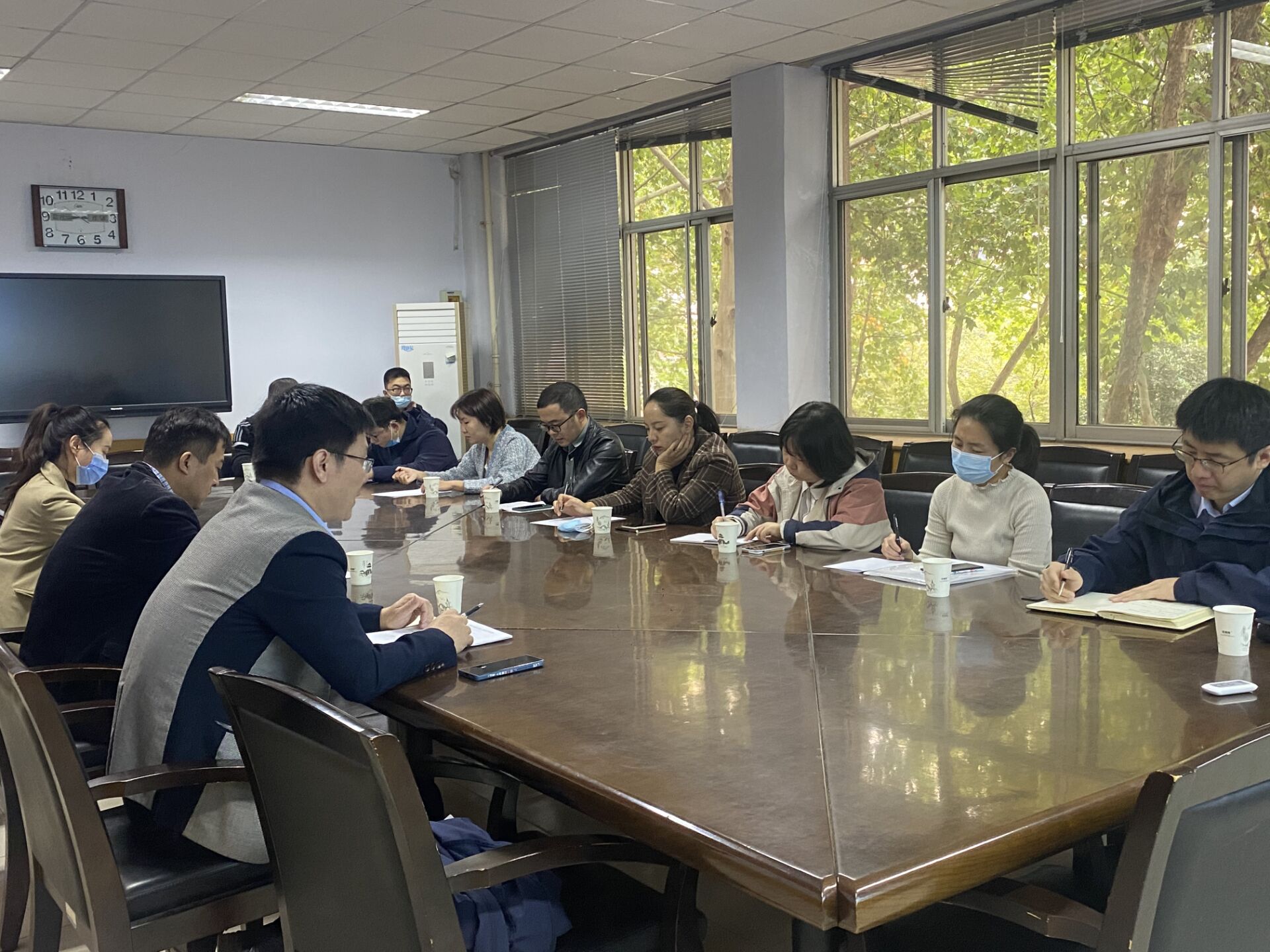于院办二楼会议室召开2021级新生专业辅导员(班主任)迎新工作会,院党委副书记赵宁、团委书记黄笑、年级辅导员王晓楠及全体新生专业辅导员参加会议。