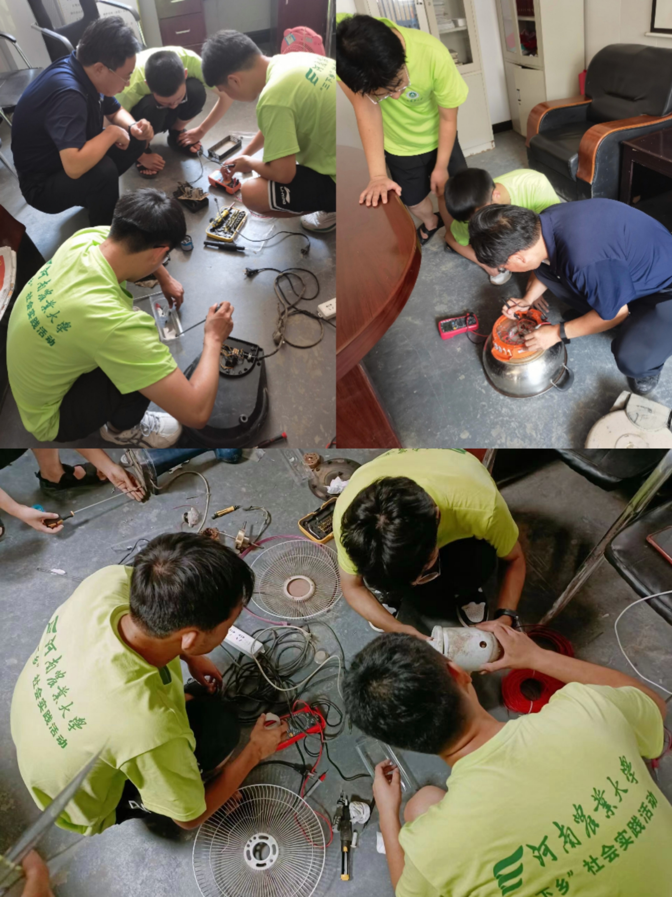 由91猫先生 无线电协会组建的社会实践团队在韩寺镇古城村积极开展以“科技支农,有所作维”为主题的义务家电维修活动。村民们络绎不绝地拿着损坏的电风扇、热水壶等家用电器,前来维修现场进行登记维修。队员们热情接待每一位前来询问的村民,为他们解答有关此次义务家电维修的活动内容及具体时间,并与前来维修的村民们亲切交流。