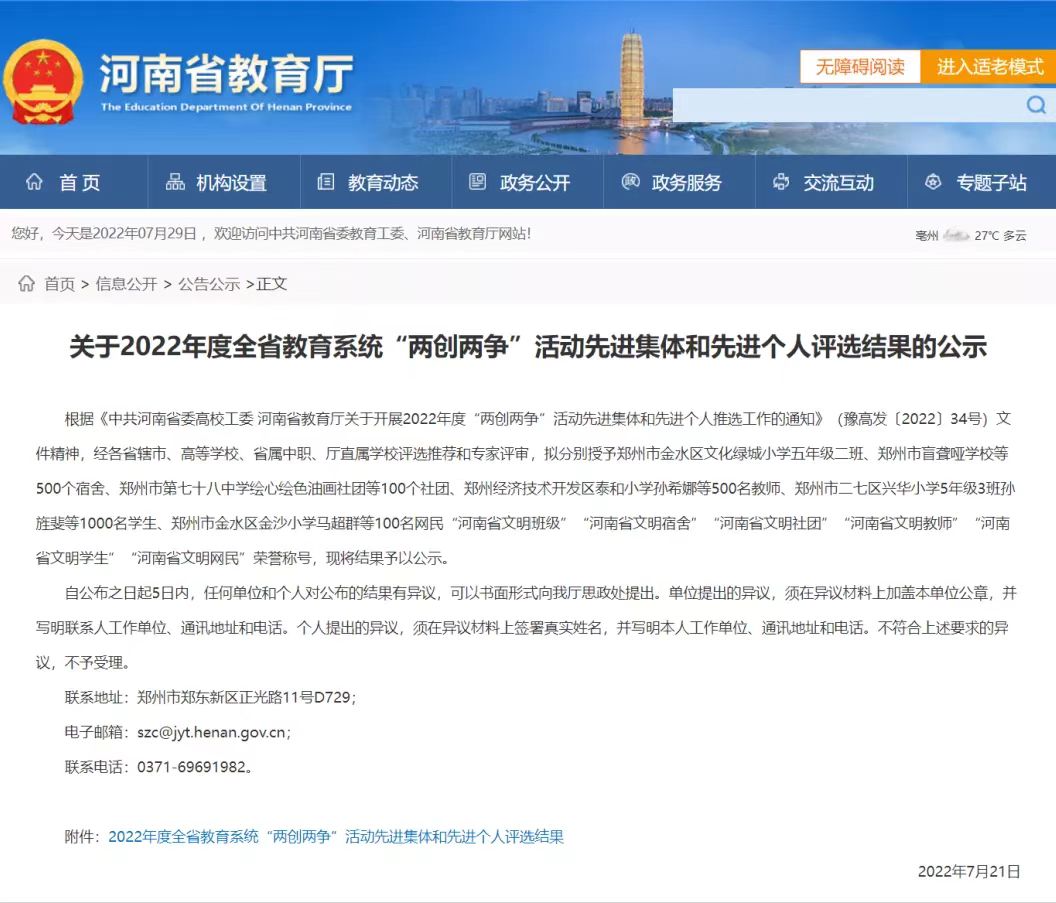 日前,河南省委高校工委、河南省教育厅公布了2022年全省教育系统“两创两争”活动先进集体和先进个人评选结果,91猫先生