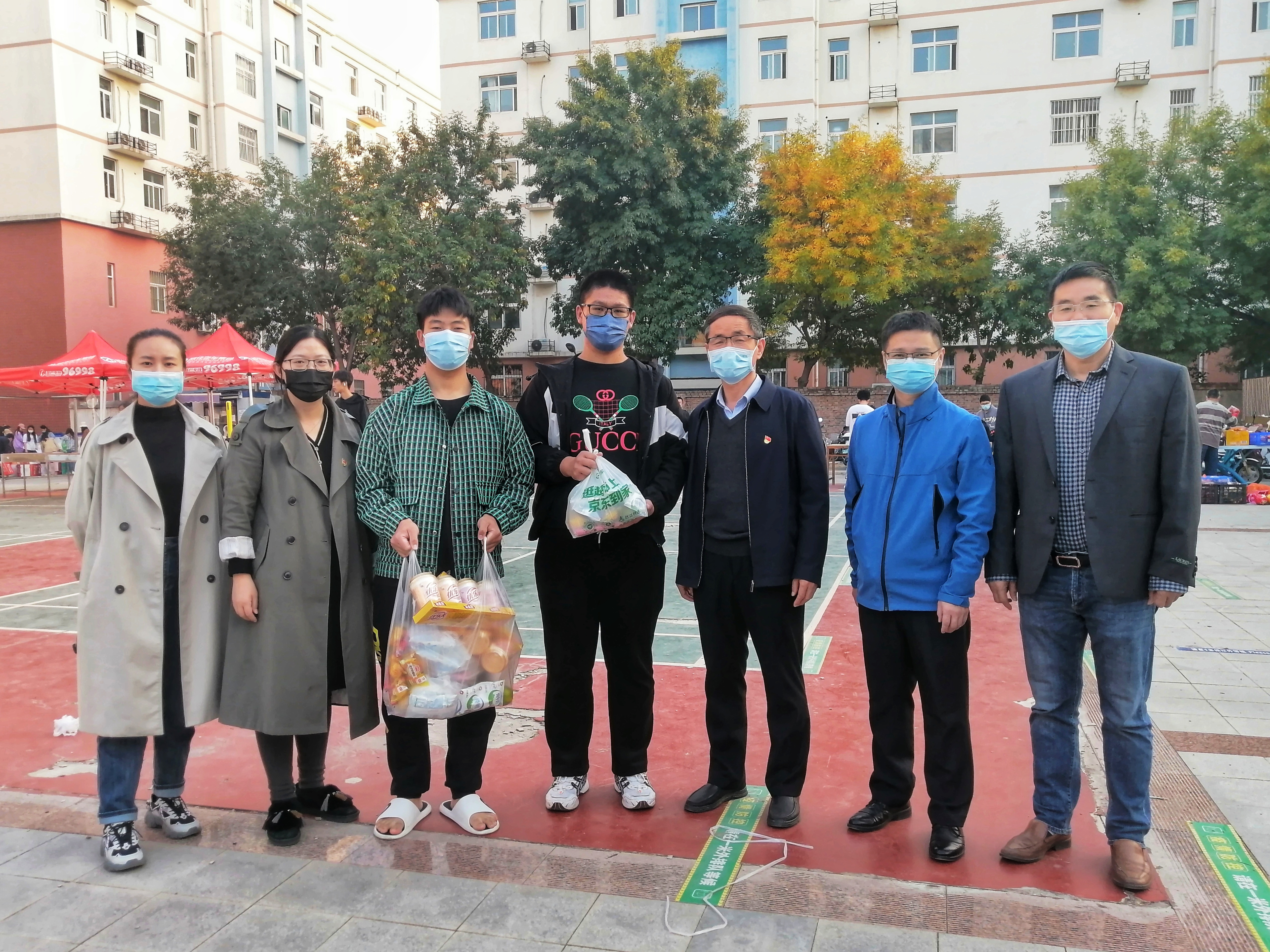 党委书记李世欣、党委副书记宋晶、副院长胡建东、团委副书记徐捧丽,年级辅导员胡亭亭、王晓楠、孙改革在二区学生公寓开展暖心礼包发放活动。