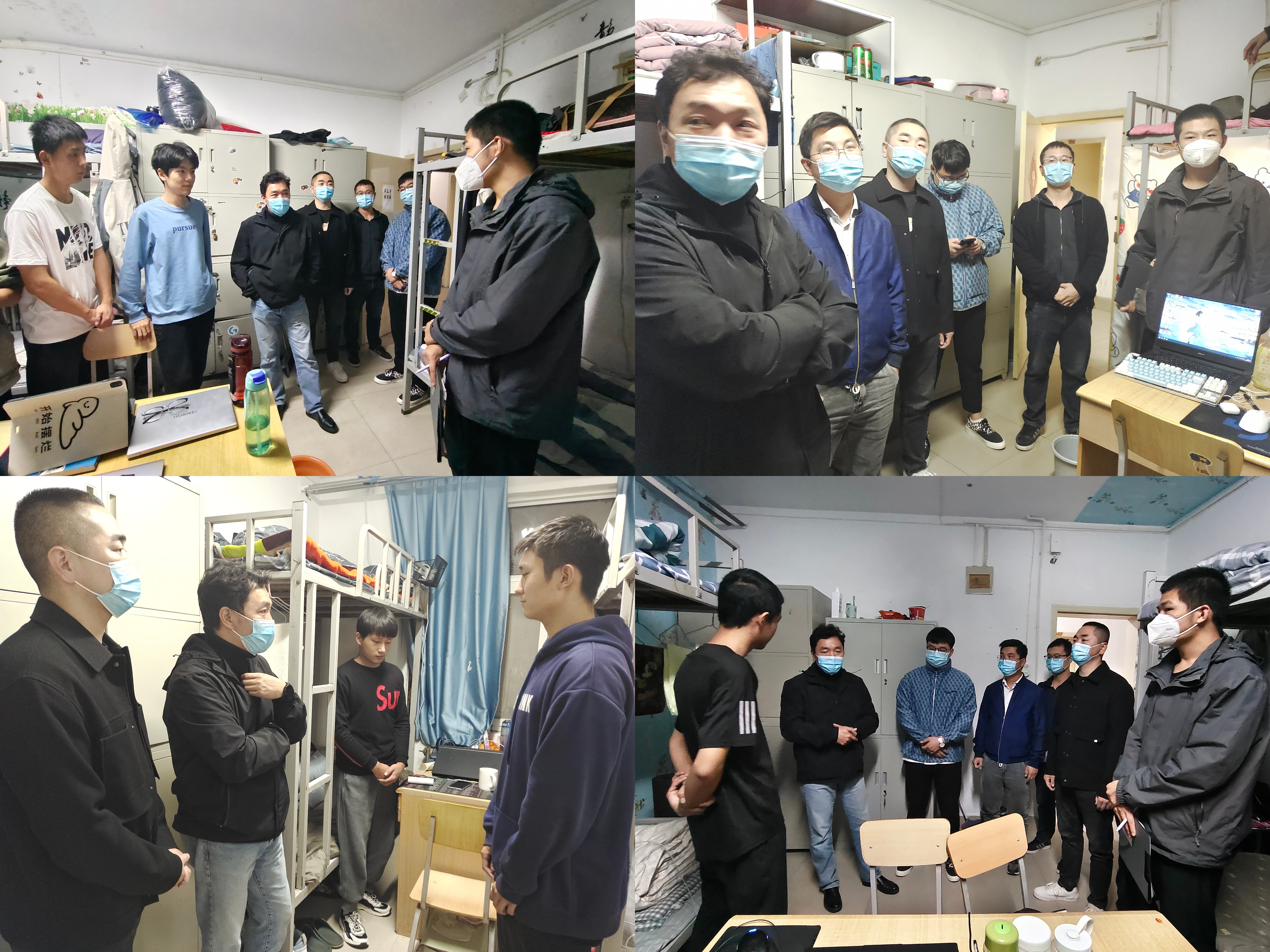 在走访慰问过程中,校、院领导老师详细询问学生网课期间存在的问题,并针对学生反映的生活问题进行登记。了解学生现阶段的学习情况、课余时间的兴趣爱好,鼓励学生劳逸结合,在提升个人能力的同时保持健康强壮的体魄。强调当前阶段的特殊性,提醒学生做好个人防护,保持良好的生活作息,做好宿舍内务卫生,同时认真遵守疫情防控规定,及时进行核酸检测和健康上报。