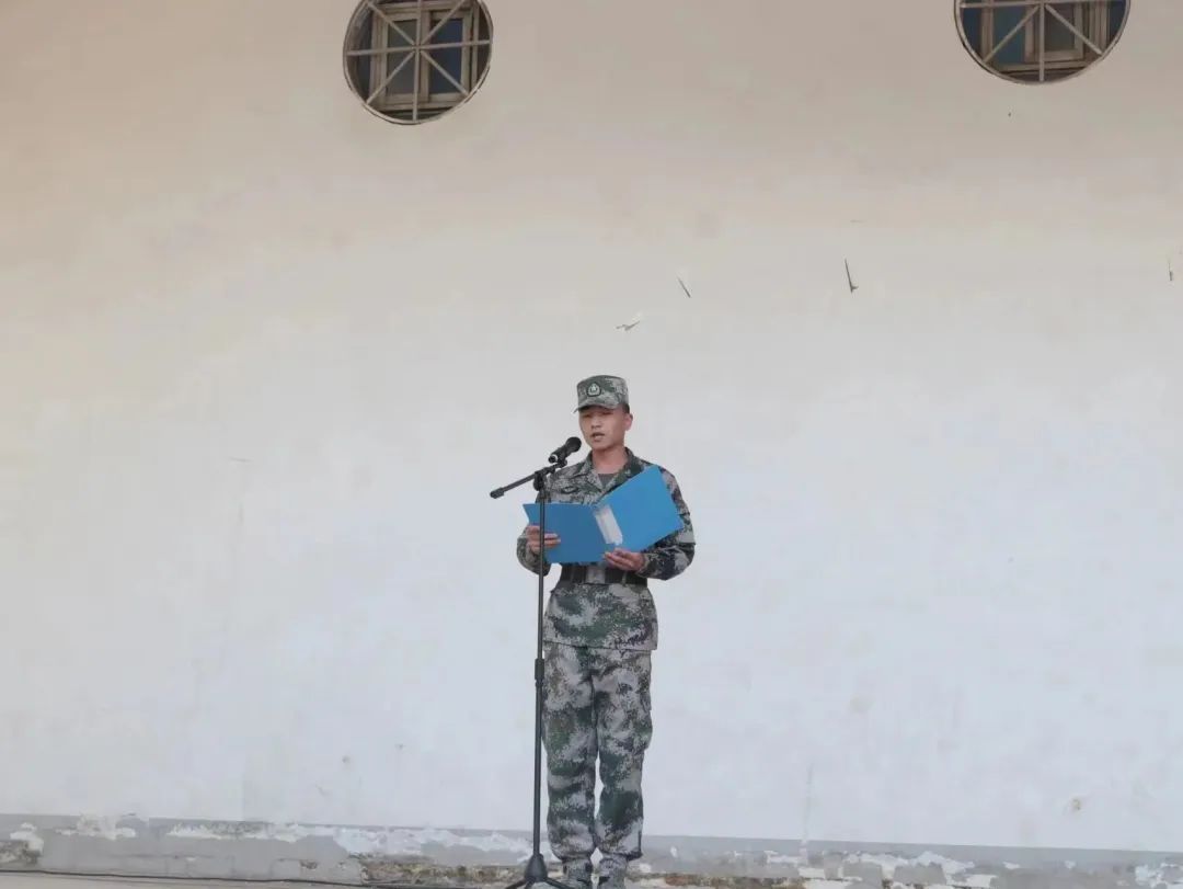 教官代表田雪磊上台发言。他表示,自己将认真履行一名教官应尽的职责,以身作则,发扬不怕苦,不怕累的精神;以主人公姿态,认真执行有关军训工作的各项规章制度,高标准、严要求地完成此次军训任务;以兄长之情,努力为大家营造良好的训练与生活氛围。
