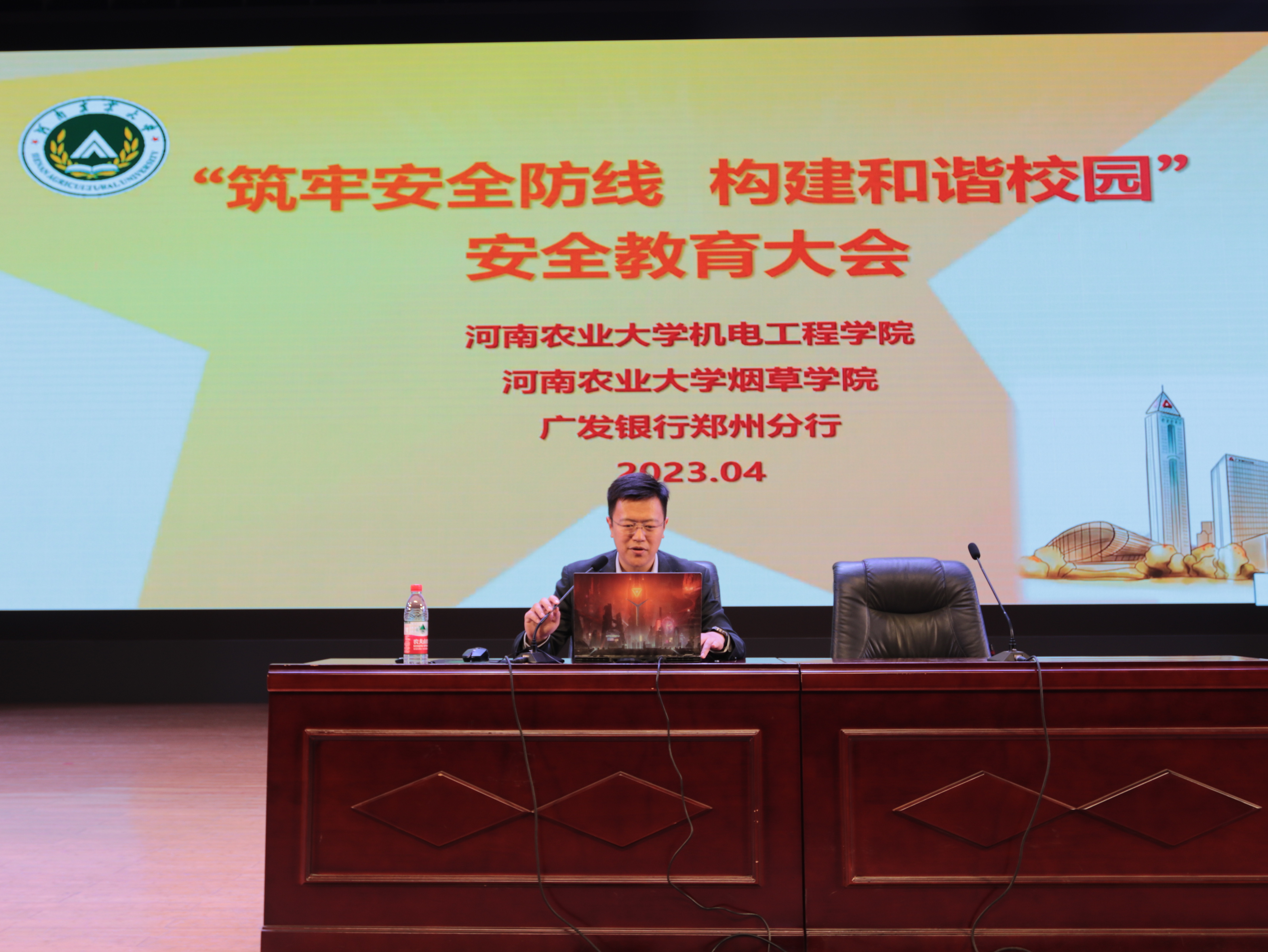 于文化路校区大礼堂开展“筑牢安全防线,构建和谐校园”安全教育大会,大会特邀校广发银行郑州分行优秀讲师罗灿做专题报告,91猫先生