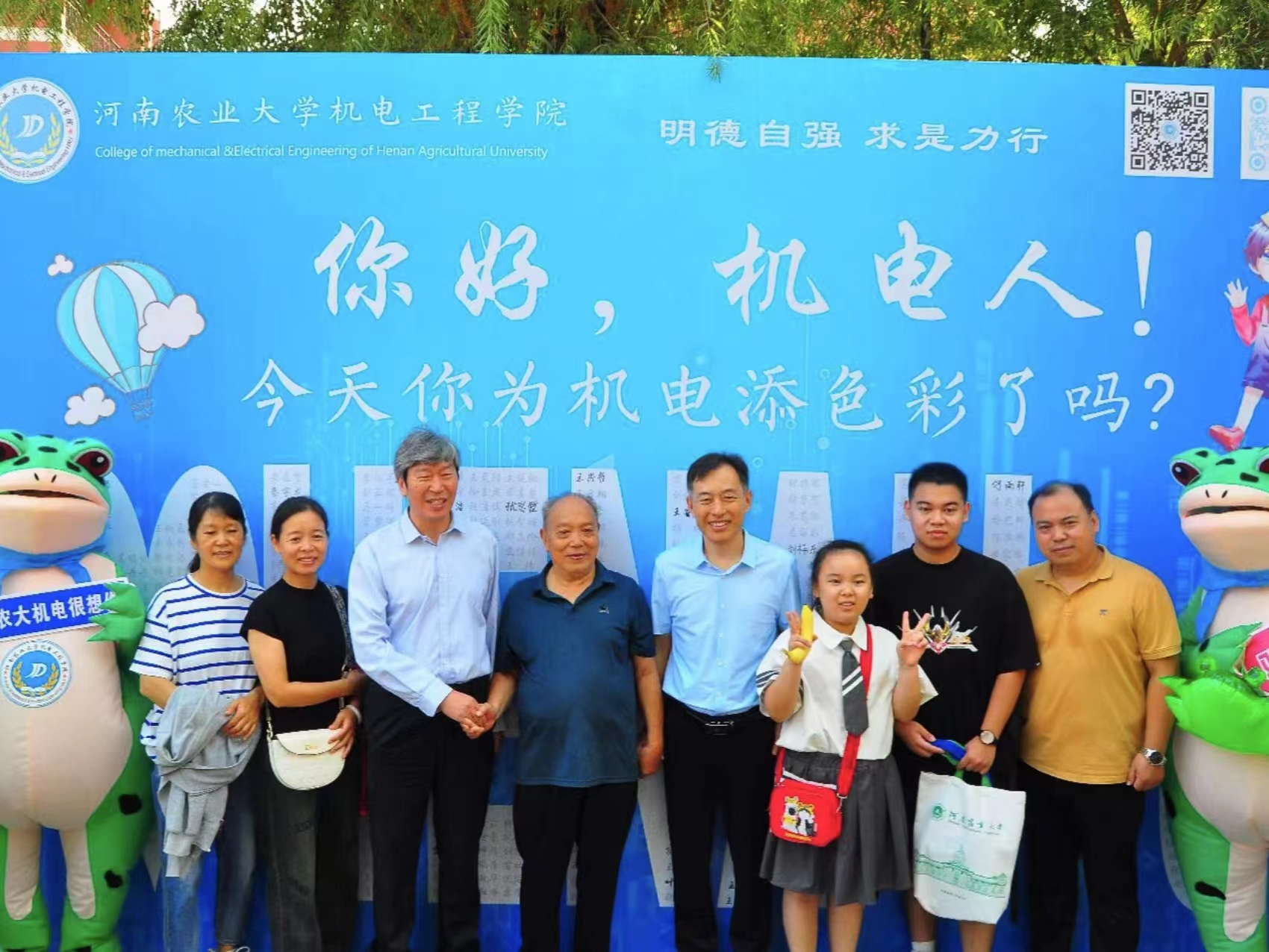 新生及家长合影留念。