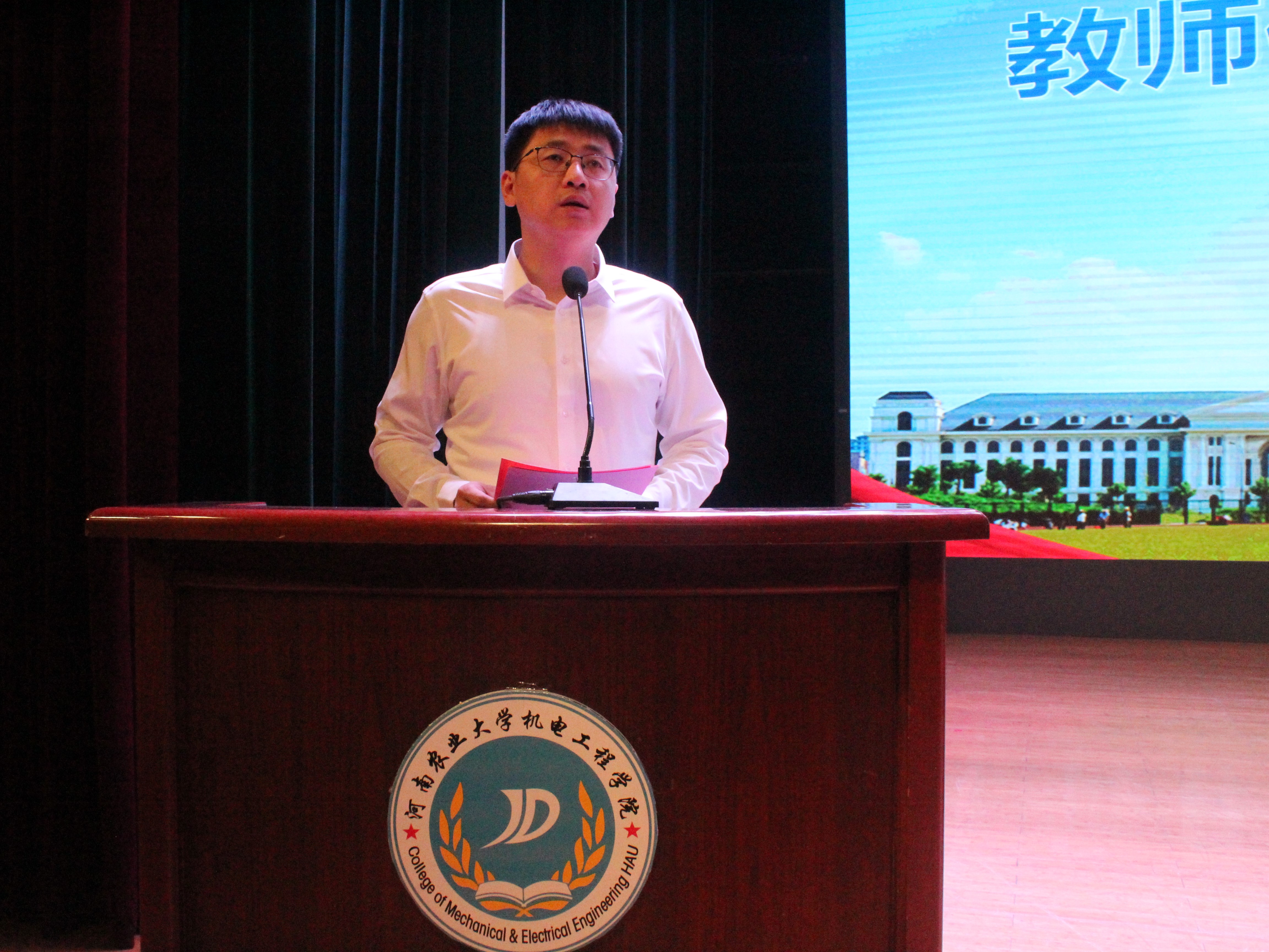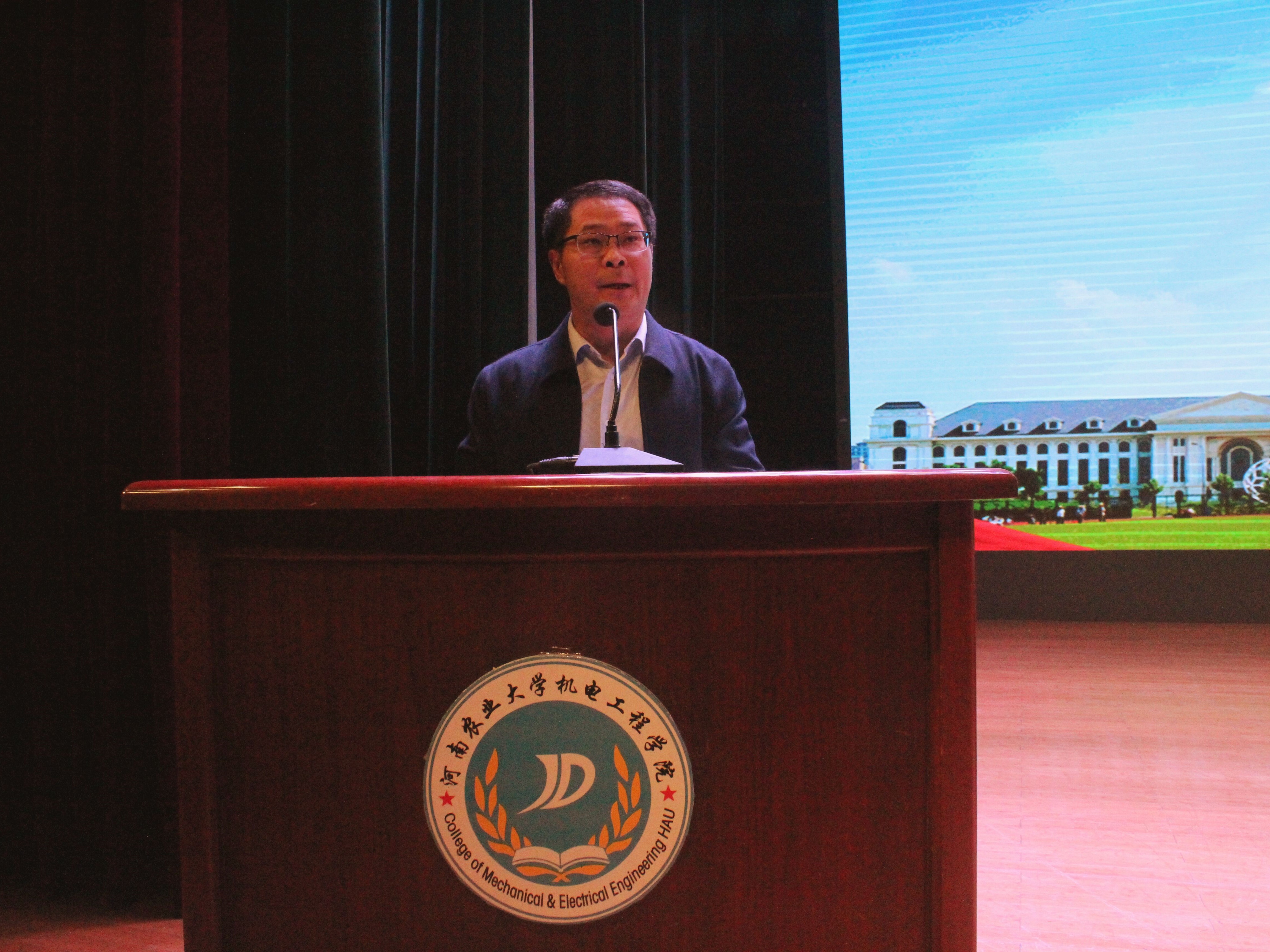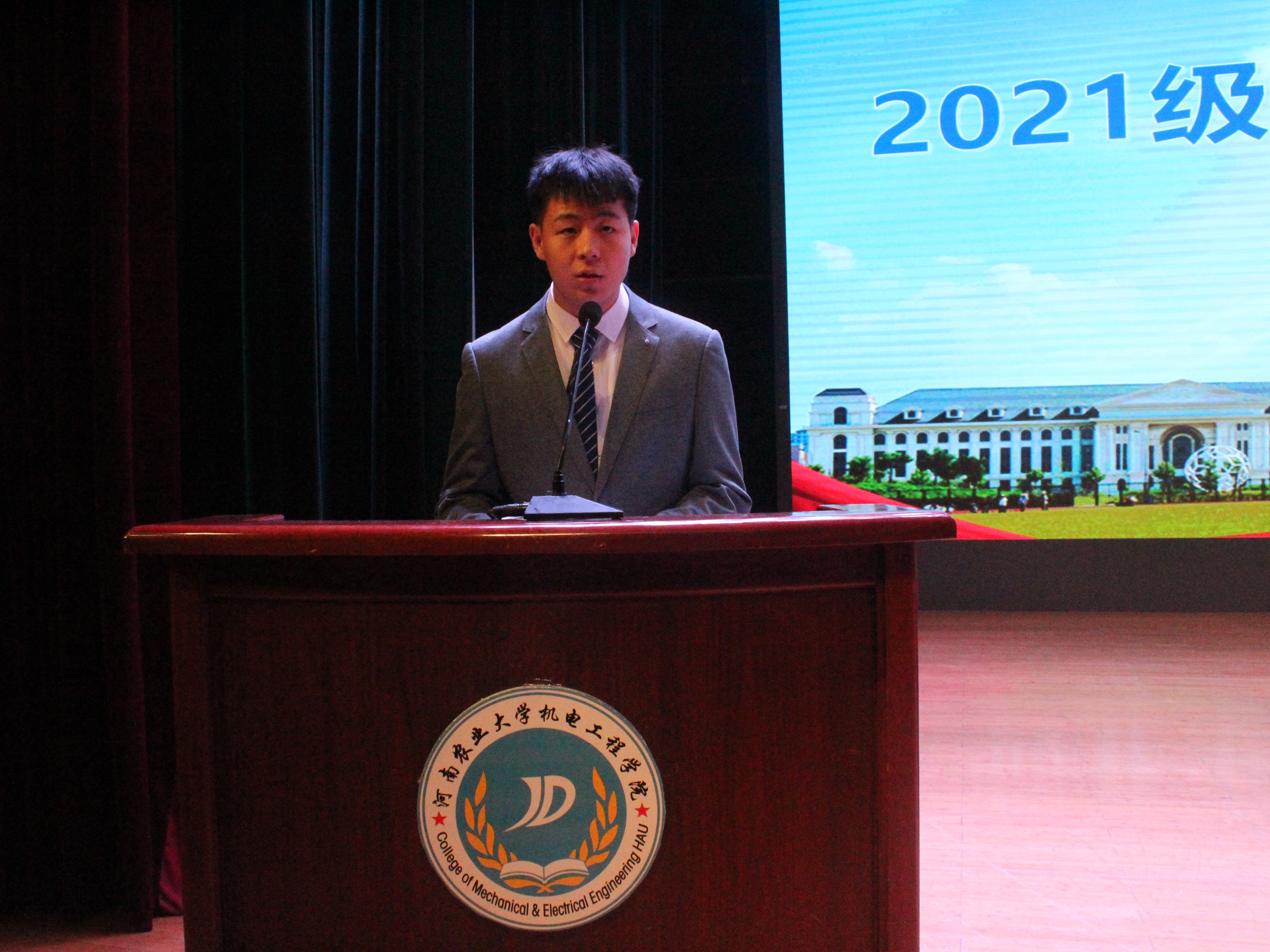 胡建军进行致辞,他首先对全体新生表示热烈欢迎并致以诚挚的问候。紧接着,他围绕学院发展历程、师资力量、办学理念及荣誉成就等方面介绍学院基本情况。并对新生 提出三点希望:坚定理想信念,锚定青春航向,用实际行动实践报国之行;练就过硬本领,汲取奋进力量,担当起时代赋予的重大使命;投身伟大实践,担当时代重任,在青春时代拼搏奋进,为未来赋能。最后他祝愿全体同学能在大学时代发现自我,释放潜能,以机电学院为起点,乘风破浪,勇创辉煌,向着未来不断前进。