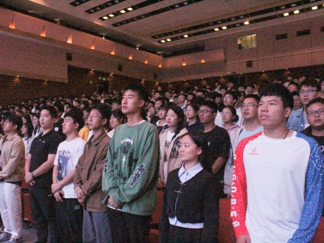 会议伊始,全体起立,在庄严肃穆的氛围中奏唱中华人民共和国国歌。伴随着激昂的国歌,2023级新生开学典礼正式拉开帷幕。
