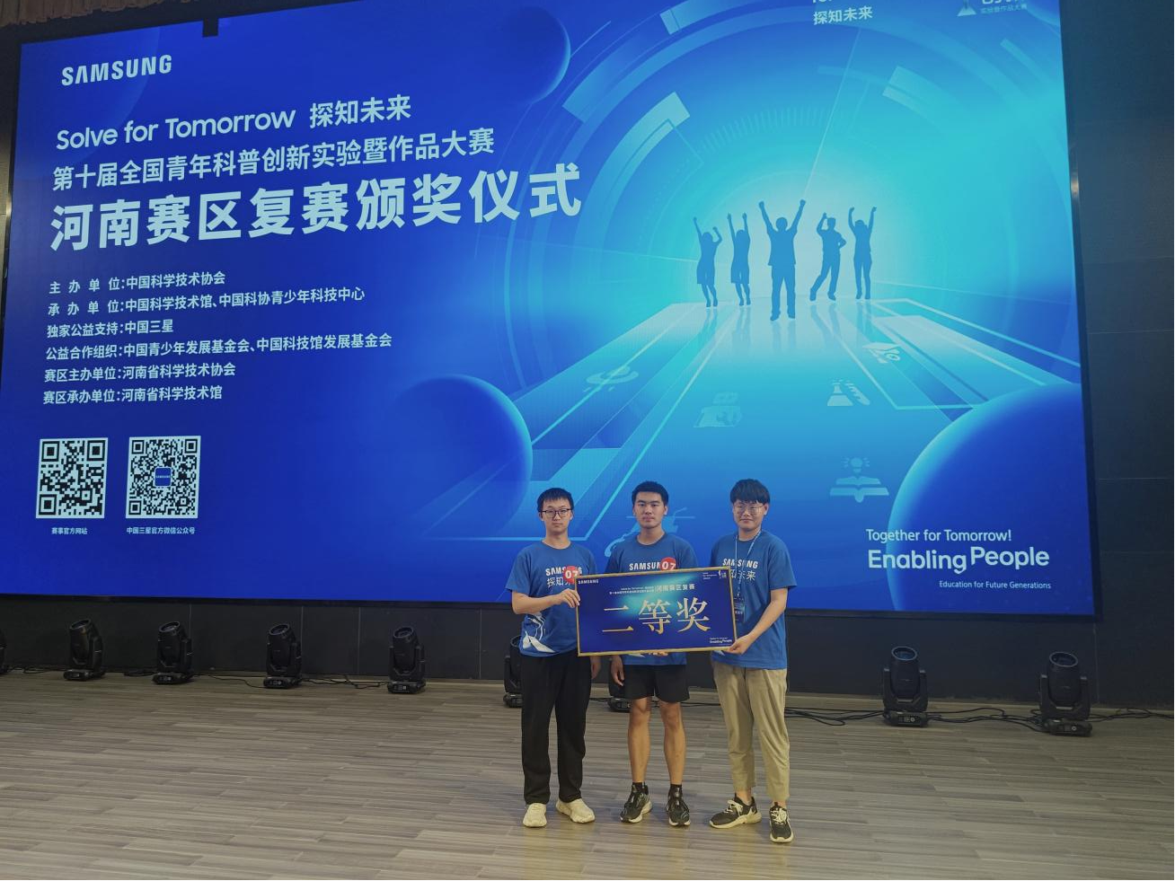 学子经过激烈的角逐荣获二等奖。此项赛事分为初赛和复赛两个阶段,来自全省30所高等院校和120所中学的867支队伍参加了比赛。经初赛15位专家评审,70组作品进入河南赛区复赛,其中大学组有20支代表队。