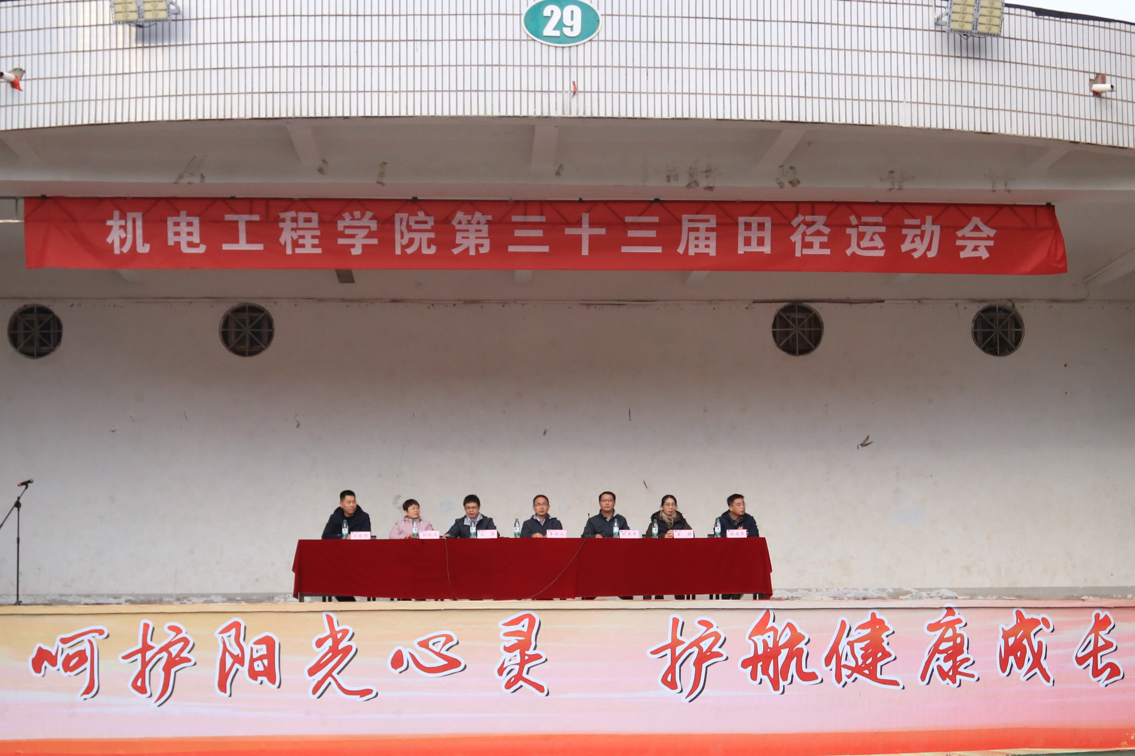 第三十三届田径运动会。院党委书记李世欣,院长胡建军,党委副书记宋晶,副院长刘淑杰、胡建东、王振锋等出席开幕式。23级、24级全体同学及班主任代表参加运动会开幕式方队。体育学院袁静老师担任本次运动会总裁判长,开幕式由宋晶主持。