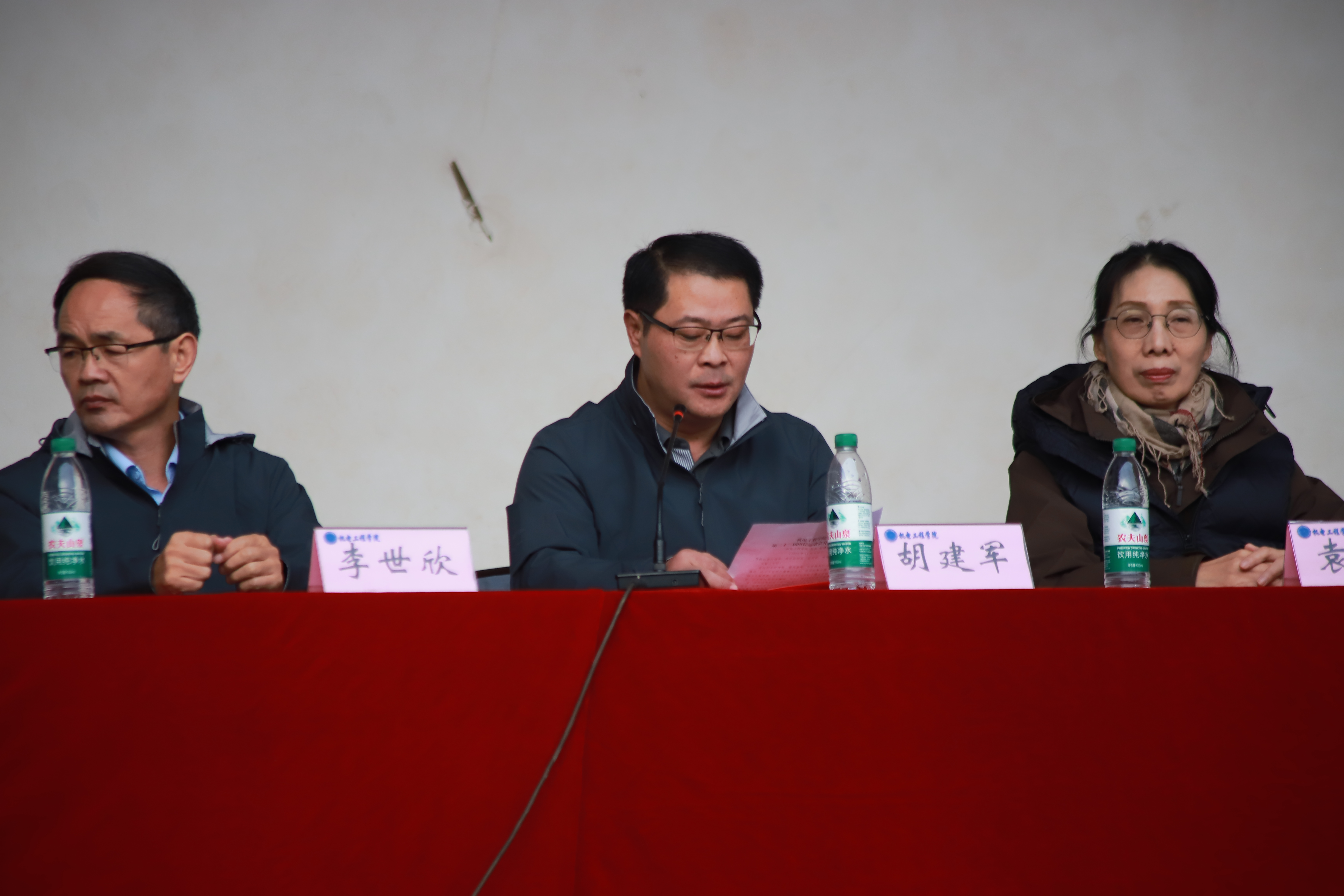 接着,胡建军发表开幕致辞,他首先对运动会的隆重开幕表示热烈祝贺,并向为运动会筹备付出辛勤劳动的全体师生表示诚挚感谢。他强调青春的价值,鼓励全体运动员发扬奥运健儿勇于拼搏、追求卓越的精神。同时,他倡导广大师生重视健康,将运动融入日常生活,并希望全体运动员、裁判员和工作人员各司其职,全力以赴,共同推动运动会取得圆满成功。