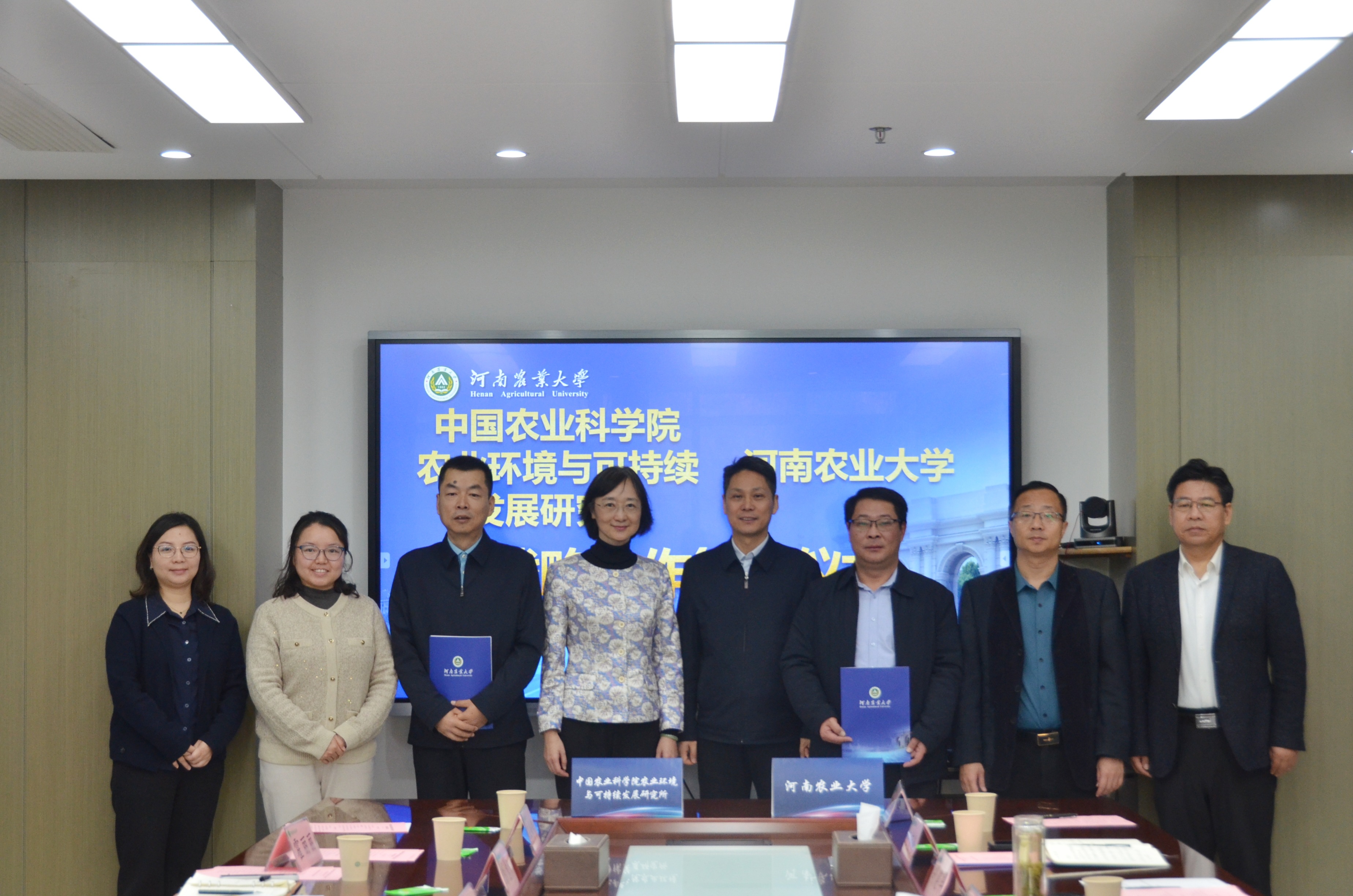 领导班子出席签约仪式。中国农业科学院农业环境与可持续发展研究所、学校校长办公室、发展规划处、研究生院、教务处、社会服务处相关负责人,林学院、资源与环境学院、植物保护学院相关负责人参加会议。社会服务处处长赵翠萍主持会议。
