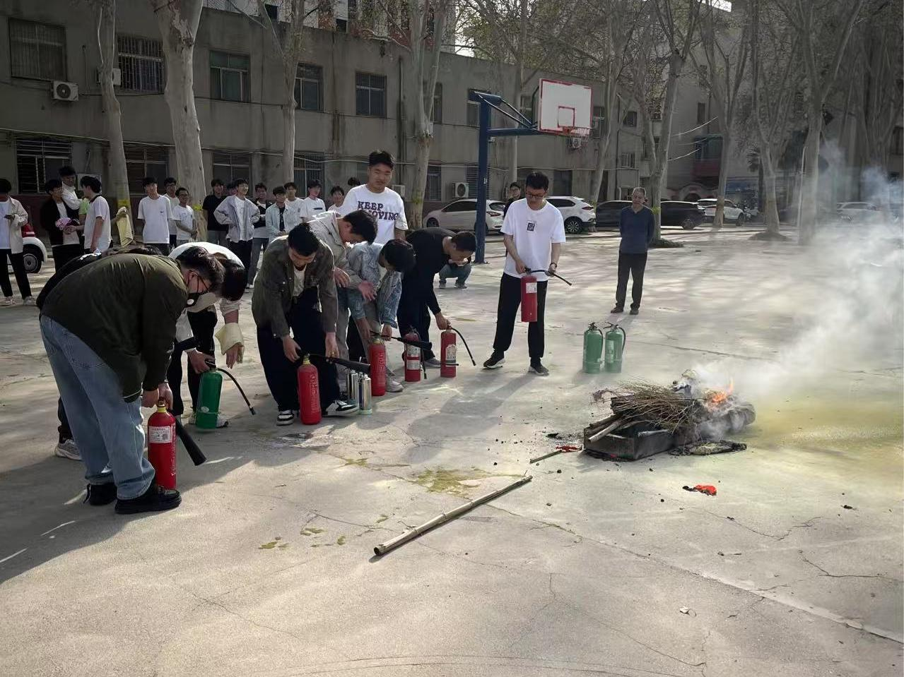 15时40分,全体师生转移至东篮球场进行灭火实操培训。保卫处消防员首先详细讲解并演示了灭火器的操作要领,随后师生分组进行实战演练,成功扑灭模拟火源。最后,消防员现场教学消防水龙带的使用方法,部分师生在指导下进行了实际操作。(图/文:李林泽 审核:刘淑杰)