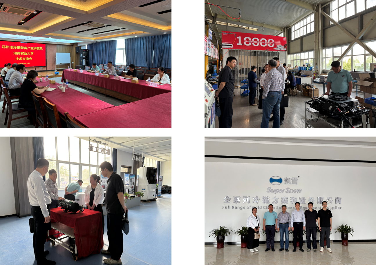 双方进行了座谈交流。郑州凯雪冷链股份有限公司董事长冯仁君、郑州凯雪冷链股份有限公司副总经理代灿丽、郑州凯雪冷链股份有限公司党支部书记刘静等企业领导对学院来访表示热烈欢迎,就冷链行业现状、公司发展情况、面临技术难题等内容进行了详细介绍。王振锋副院长对公司在冷链设备领域取得的成绩给予了高度评价,介绍了学院及专业的发展情况、科研团队在相关领域的技术积累等内容。校企双方围绕就业招聘、人才培养、科研合作等方面进行了深入交流。