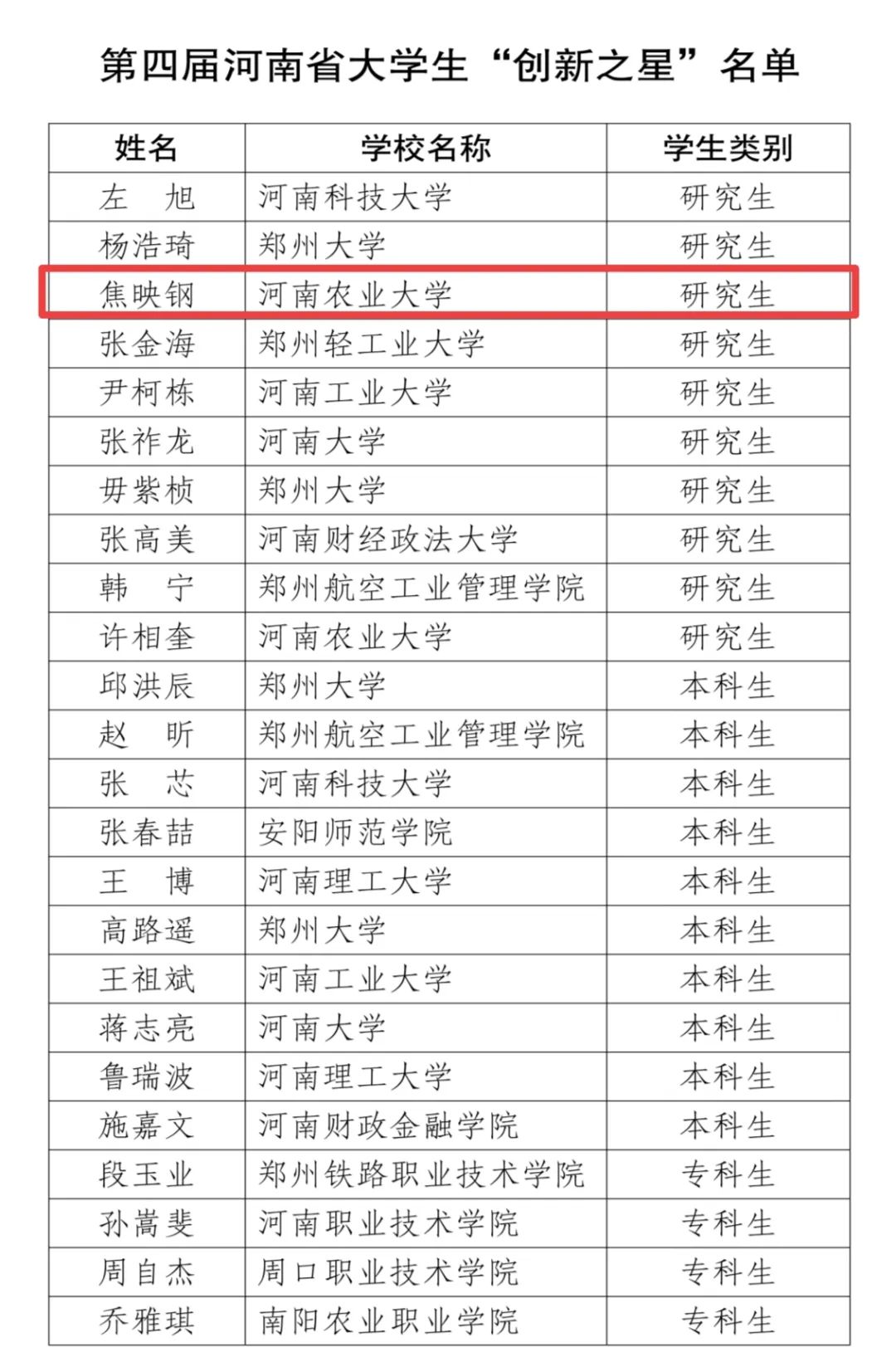 近日,河南省教育厅公布第四届河南省大学生“创新之星”名单,91猫先生
