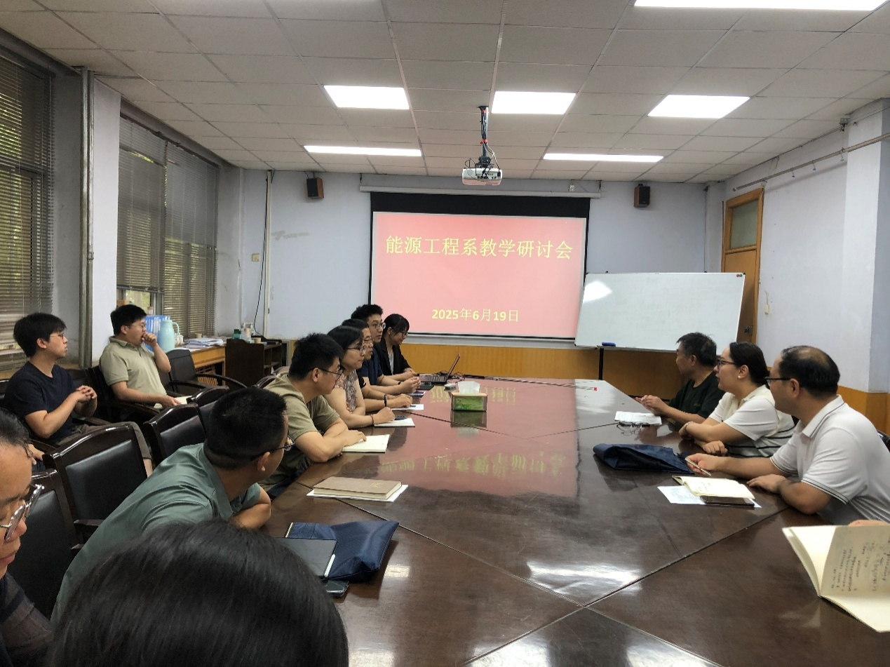 下午,贺超教授主持能源工程系教学研讨会。首先,会议对全系课程体系进行系统性梳理,按专业方向划分7个课程教研组,并对教案、讲义、PPT等教学资料开展标准化修订,确保教学内容与行业前沿同步更新。其次,对能源工程系新开设的前沿专业课程进行教材编写事宜讨论,与会教师围绕知识框架、案例设计展开热烈讨论,形成亟需编写的4门优势特色课程教材。研讨了智慧课程建设(一流课程),老师们纷纷表示要结合智慧化手段开展课程建设。谋划了教学成果申报,并进行了教学名师、教学团队建设安排。最后,对学生实习进行了商讨,结合国家"产教融合"政策导向,力求实现学生能力培养与企业需求的无缝对接。