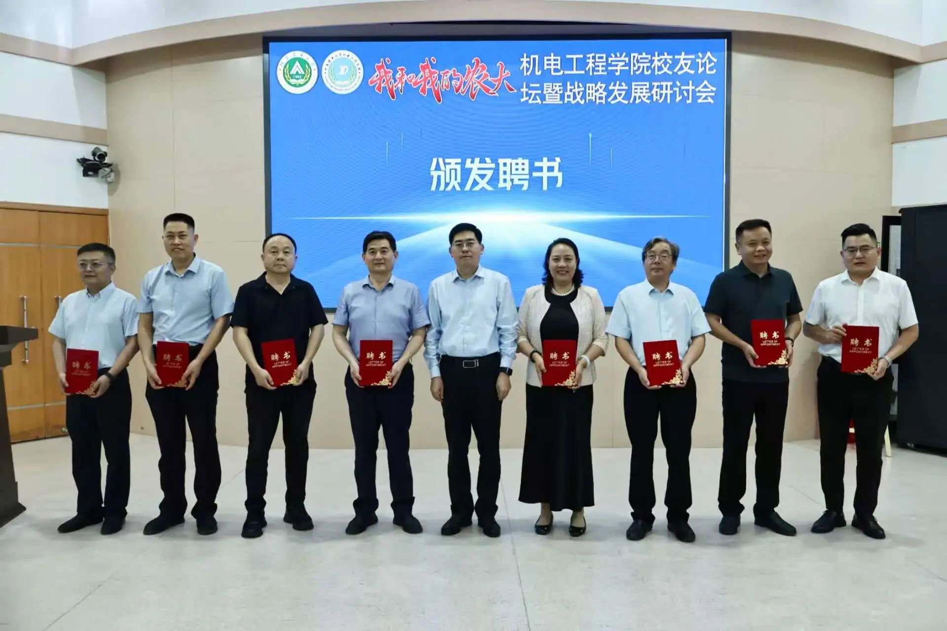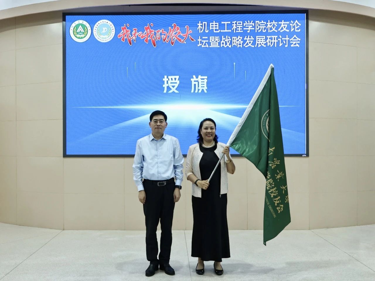 校友会揭牌,向校友会常务副会长李麦团授旗,为校友会负责人颁发聘书。