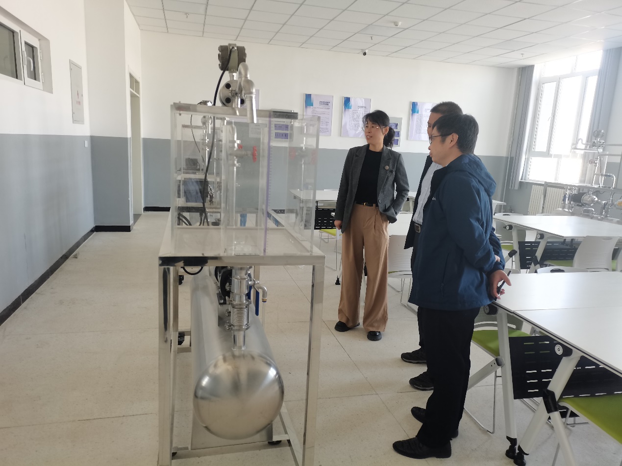 期间,宋晶一行参观了青春耀老师指导建设的热工实验室、新能源实验室等新疆能源铁道职业技术大学(筹)能源与动力工程学院专业实验室。