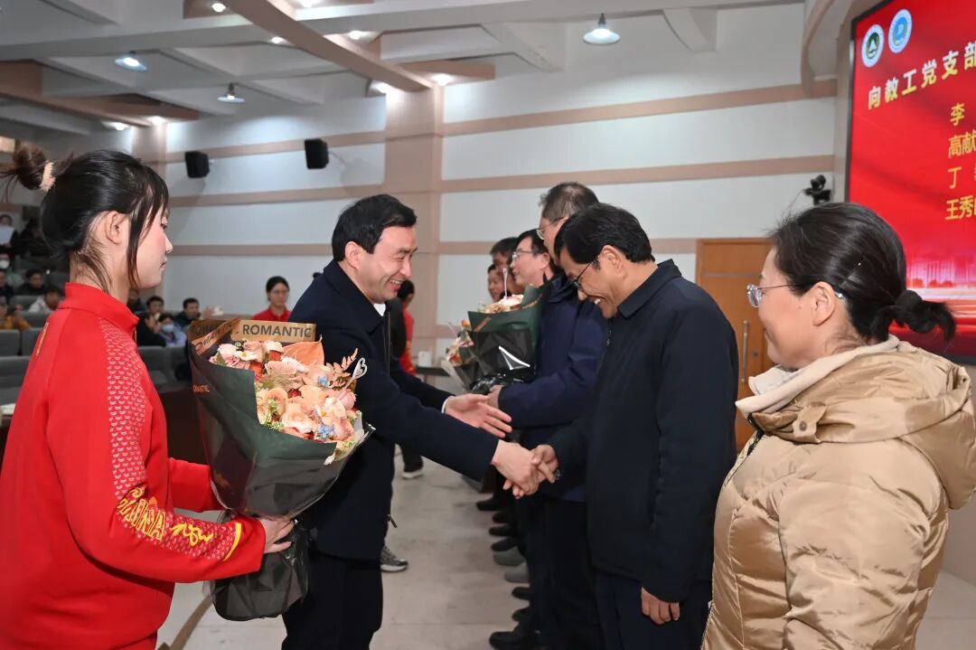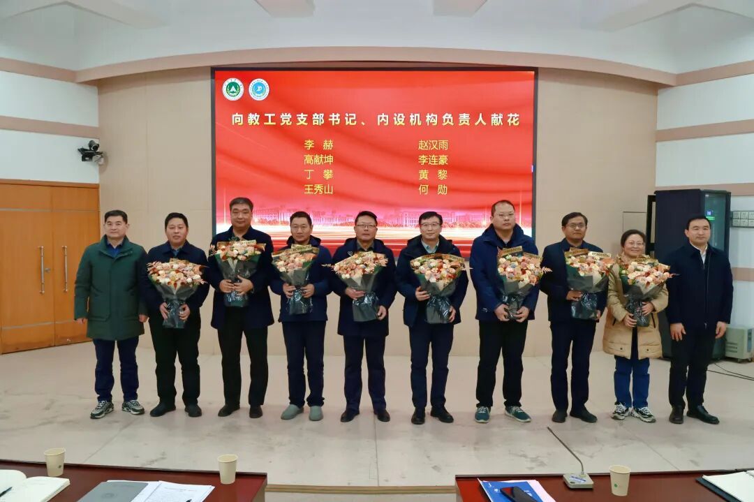 党委书记贾云飞、院长李炳军为党支部书记和内设机构负责人献花,以表达对大家辛勤付出的感谢与敬意,现场响起热烈掌声。