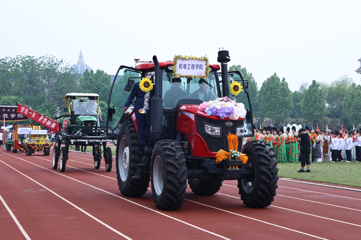 教职工方阵亮相,老师们迈着坚定整齐的步伐入场,身姿挺拔、精神饱满,彰显着教育工作者昂扬向上的风貌。“团结一致,奋力拼搏,爱我机电,共创辉煌!”的院训口号响彻云霄,色彩鲜明的院旗与横幅迎风招展,呐喊声与欢呼声交织在一起,不仅彰显了机电学院凝心聚力、奋勇争先的精神风貌,更展现了机电学子以科创赋能农业、以实干践行担当的青春风采。