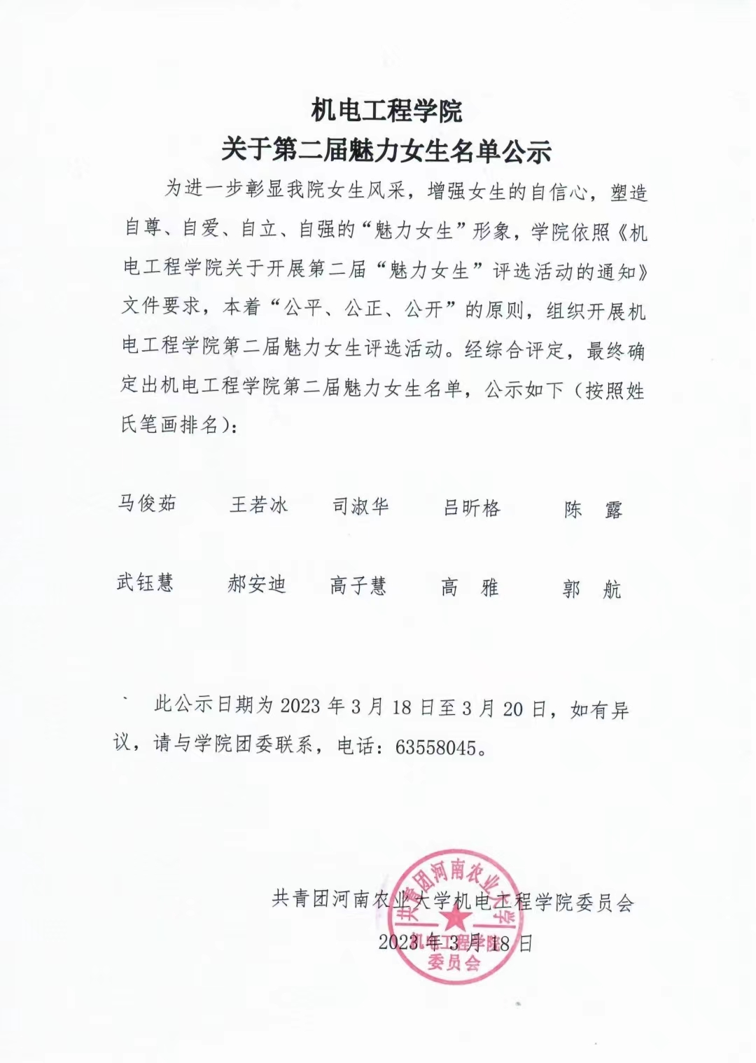91猫先生 关于第二届魅力女生名单公示