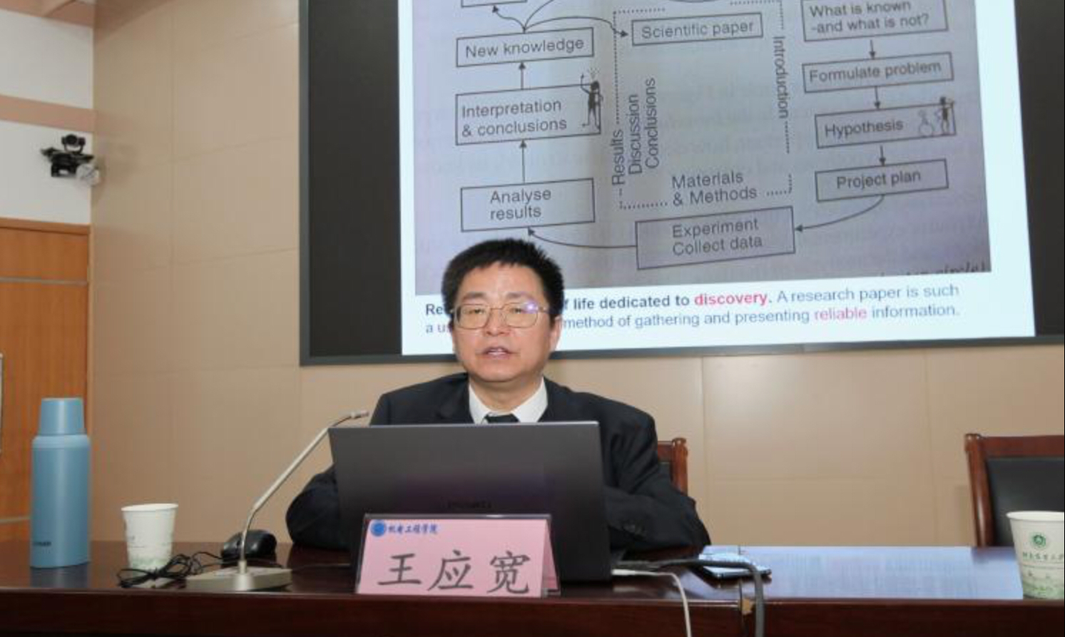 报告伊始, 胡院长对王应宽进行了介绍。接下来,王应宽围绕全球化科学研究与科技出版展开讨论,然后就科技论文概述和写作前的准备进行了讲解,对科技论文写什么、怎么写和如何选择投稿期刊的规范和要求进行了详细的介绍。随后王应宽结合实际经验为参会人员讲授了论文结构和撰写技巧。最后,王应宽就投稿与发表过程中经常遇到的问题进行讲解并结合自身体会提出建议。会后,胡建军院长感谢并高度评价了王应宽给全院师生带来的报告。