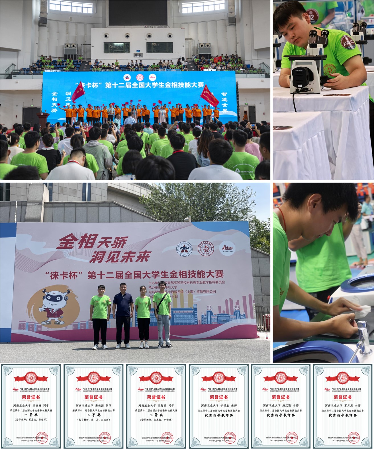参赛队伍由院党委书记李世欣担任领队,实验中心赵汉雨和机械系夏月庆、张冰倩、郭容男担任指导教师,2021级农机专业王晓楠与能源专业的王智豪、裴云清3位本科生参赛选手代表学校和学院参加了此次金相大赛国赛。