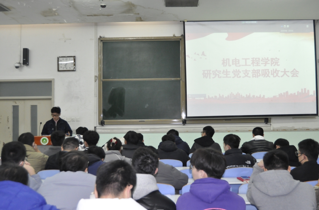 研究生党支部于文化路校区工程楼207教室召开预备党员接收大会暨预备党员转正大会。本次大会由研究生第一党支部书记李锦主持,研究生党支部应到正式党员103名,实到82名,对熊亚妮同志等10名发展对象接收为预备党员与陈湘林同志等8名预备党员转正成为正式党员进行讨论和表决。