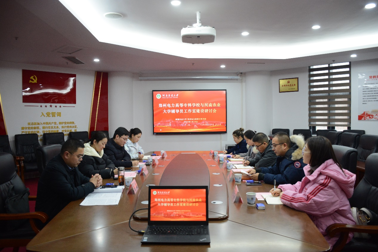 为加强辅导员工作室建设,1月19日下午,河南省朱瑞萍辅导员工作室、校“薪火强音”辅导员工作室、“匠心筑梦”辅导员工作室、“苇航”辅导员工作室与郑州电力高等专科学校就业指南针辅导员工作室于龙子湖校区第一实验楼楼222会议室开展辅导员工作室建设研讨沙龙活动。各工作室负责人及成员到场参会。