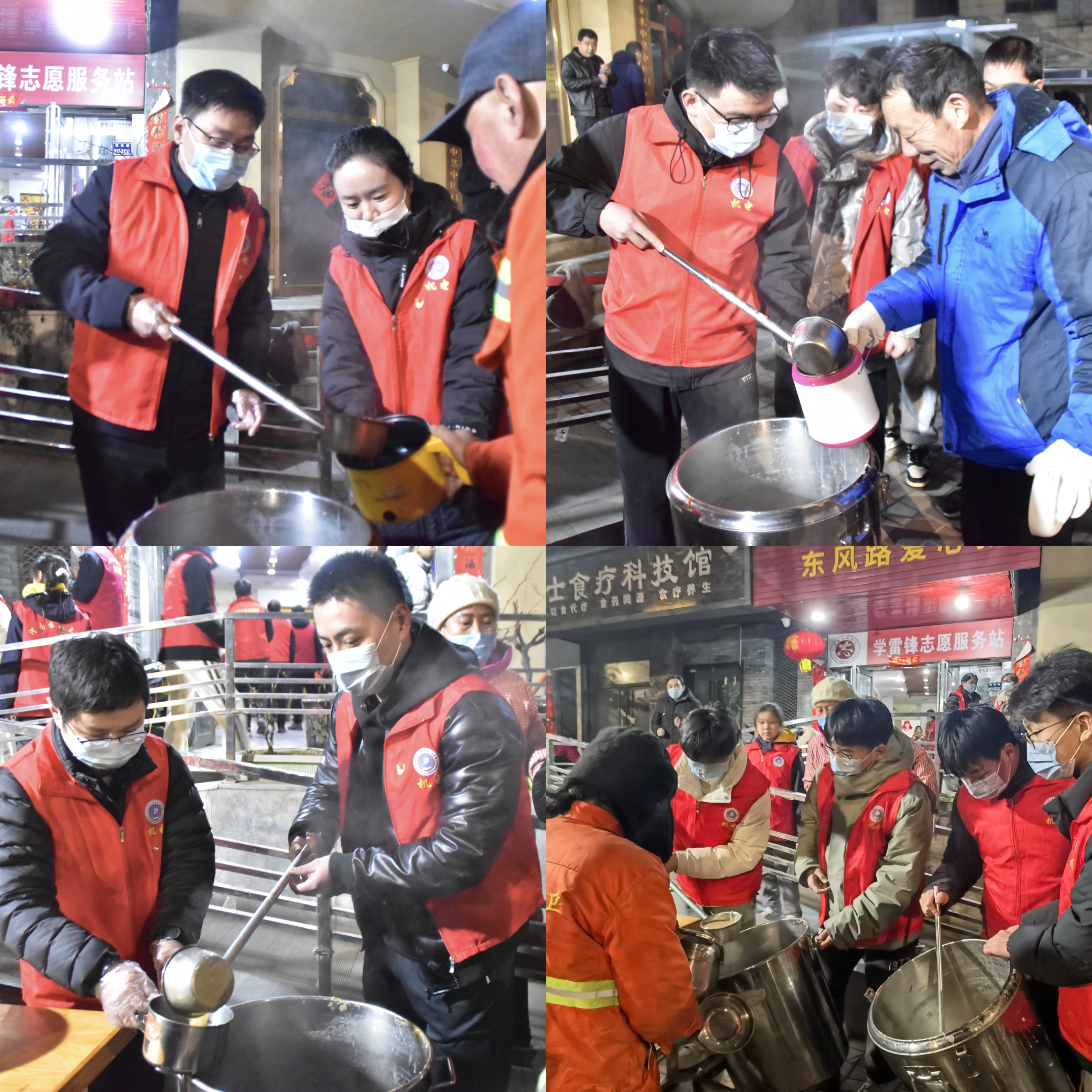 凌晨寒风起,志愿送暖阳。晨光未现,志愿者们却早早地在粥屋集合,他们精神饱满,热情如火,与粥屋的工作人员并肩作战,投入到为环卫工人准备早餐的工作中。洗菜、熬粥、蒸馒头、摆放桌椅……,他们忙碌而有序。朝阳初起之时,志愿者们将热粥、热菜、馒头依次送入每一位环卫工人的,他们用实际行动诠释着雷锋精神,每一句问候、每一个微笑都温暖着在场所有城市美容师的心。
