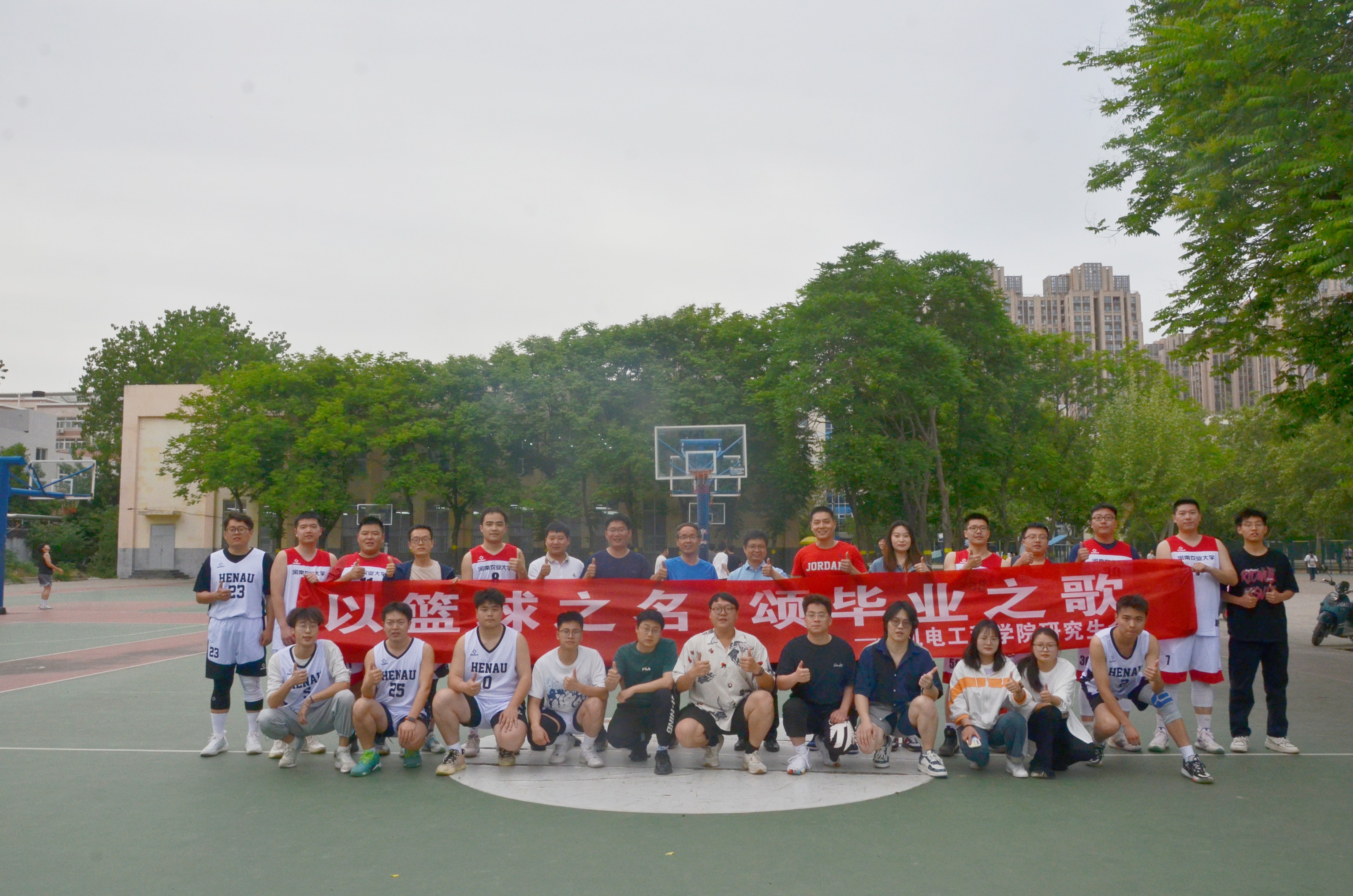比赛结束后毕业生与各年级球队、老师握手、拥抱,氛围温馨而又祥和,进一步加深了各年级研究生和师生之间的感情。